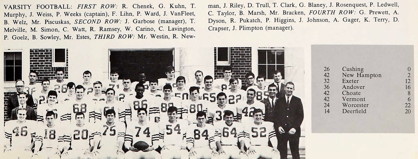 As the Mount Hermon players ran onto the field before the game, they ran through a paper banner naming each vanquished foe from the 1965 season, then through an eighth banner symbolizing that day’s opponent, Deerfield.