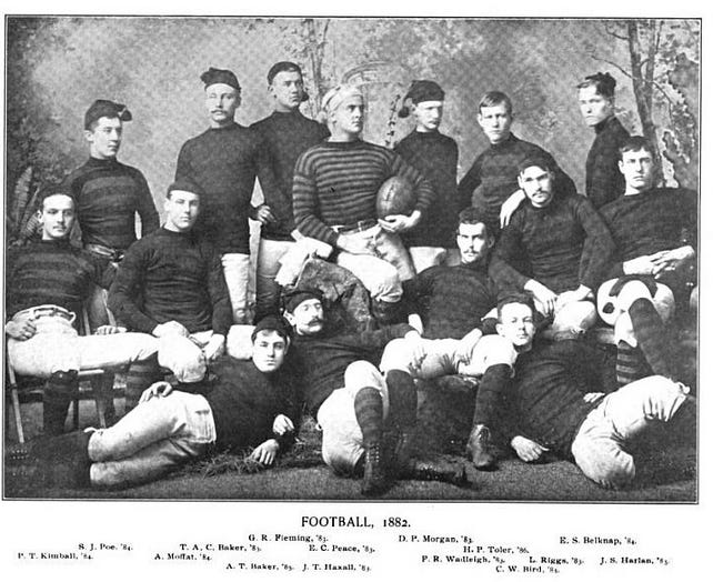 The FBS championship will be determined tonight, making it a good time to look back on college football’s first official championship game. That game occurred on November 30, 1882, the result of an April 1882 Intercollegiate Football Association resolution: