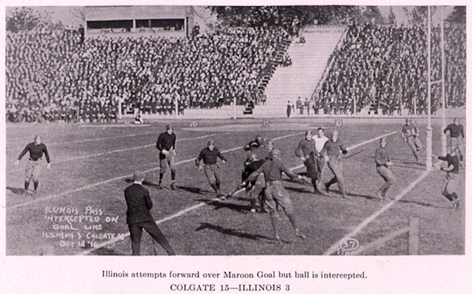 Colgate started the 1916 season shutting out Susquehanna and Maine, the latter of which was scouted by Illinois football assistant and head basketball coach Ralph Jones. Jones knew his stuff. He coached Illinois to a national basketball championship in 1915, led the Chicago Bears to the NFL championship in 1932, and co-developed football’s T formation with Clark Shaughnessy and George Halas.