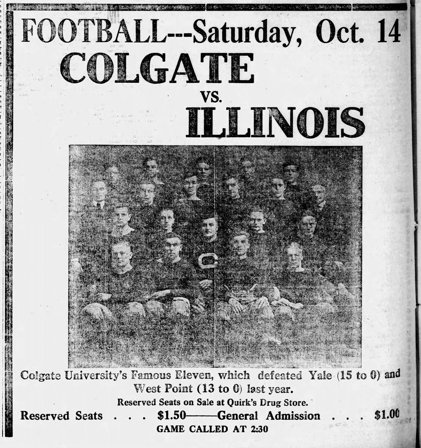 Besides never playing one another and sharing few common opponents, Illinois was a land grant school with 5,000 students, while Colgate was a private institution with a mere 575 enrollees. It would have been easy for the Illini to overlook the boys from the Chenango Valley had it not been for their Eastern football pedigree, where things remained as competitive as anywhere, though that light was beginning to fade.