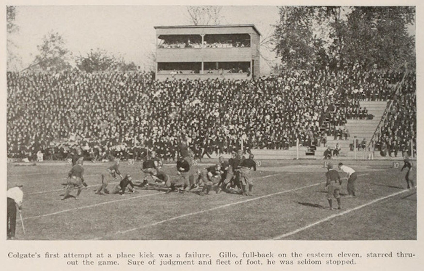 Other than those in the postage-stamp-size states of the Northeast, most schools of the time played only teams from their home and neighboring states, and sometimes the next one over. Before meeting Colgate, the only teams east of Ohio that Illinois faced came in a home-and-away series with Syracuse in 1909 and 1910, and two games with Carlisle in 1897 and 1898, both played in Chicago. After facing Colgate in 1916, their next Eastern opponent was Penn in 1925.