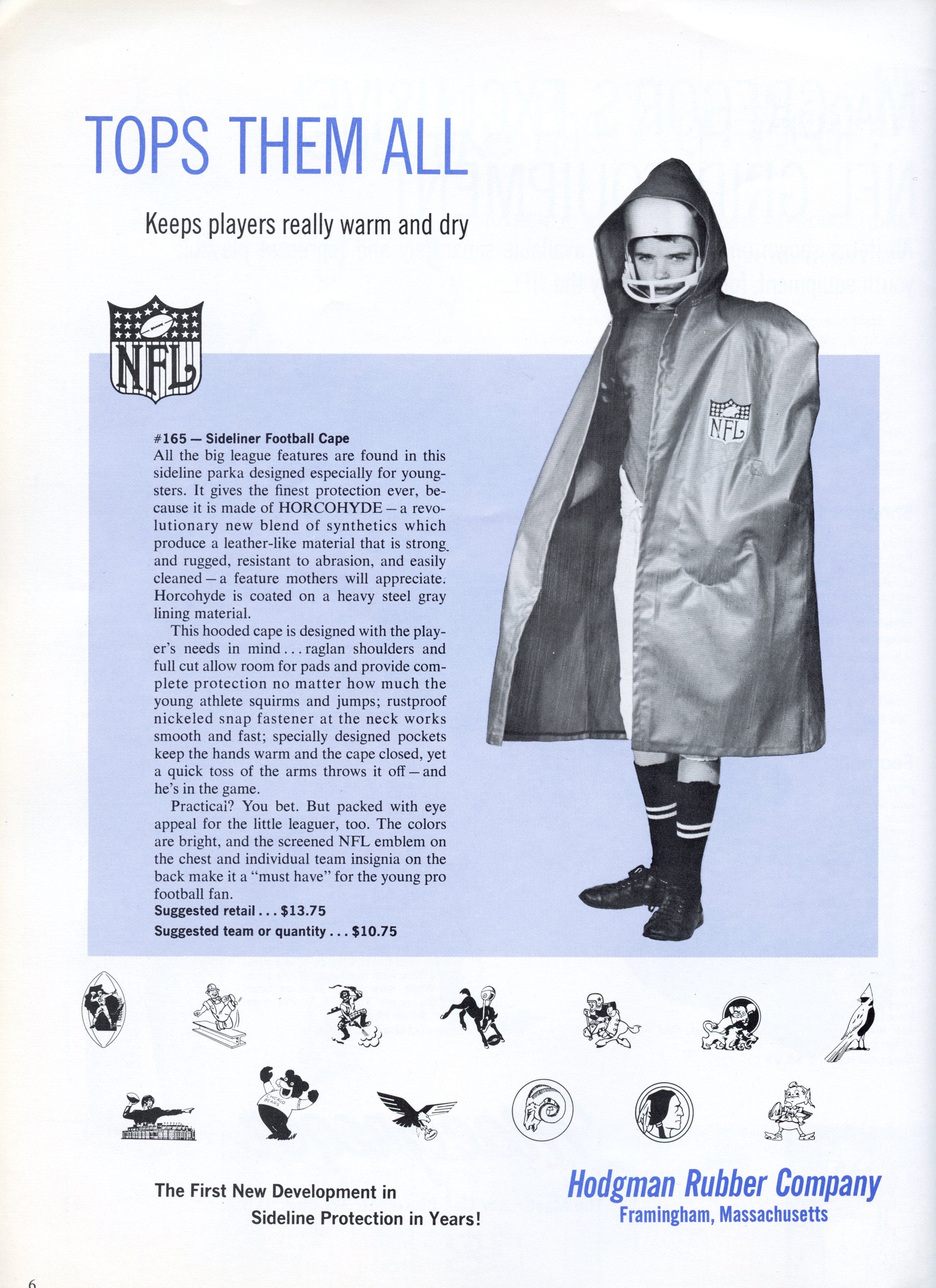 I don't think they ever told us which state Beaver lived in, but it sure looked like he lived in a studio in LA, where it never rains. However, kids of heartier stock played in the rain and cold, so they needed proper sideline gear.