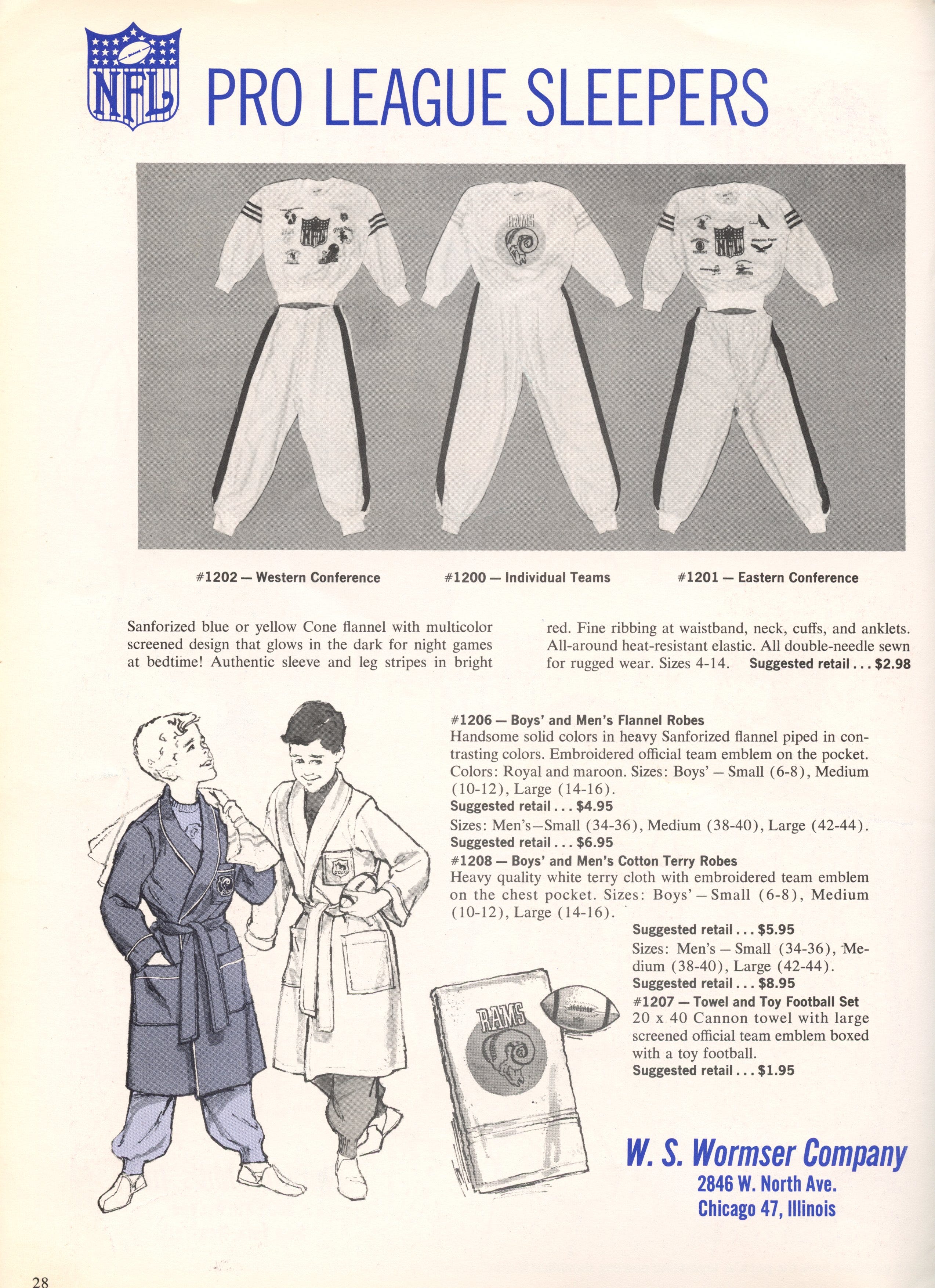Before showing the kids' apparel, let's review the fancy logos available for the then-thirteen-team NFL.