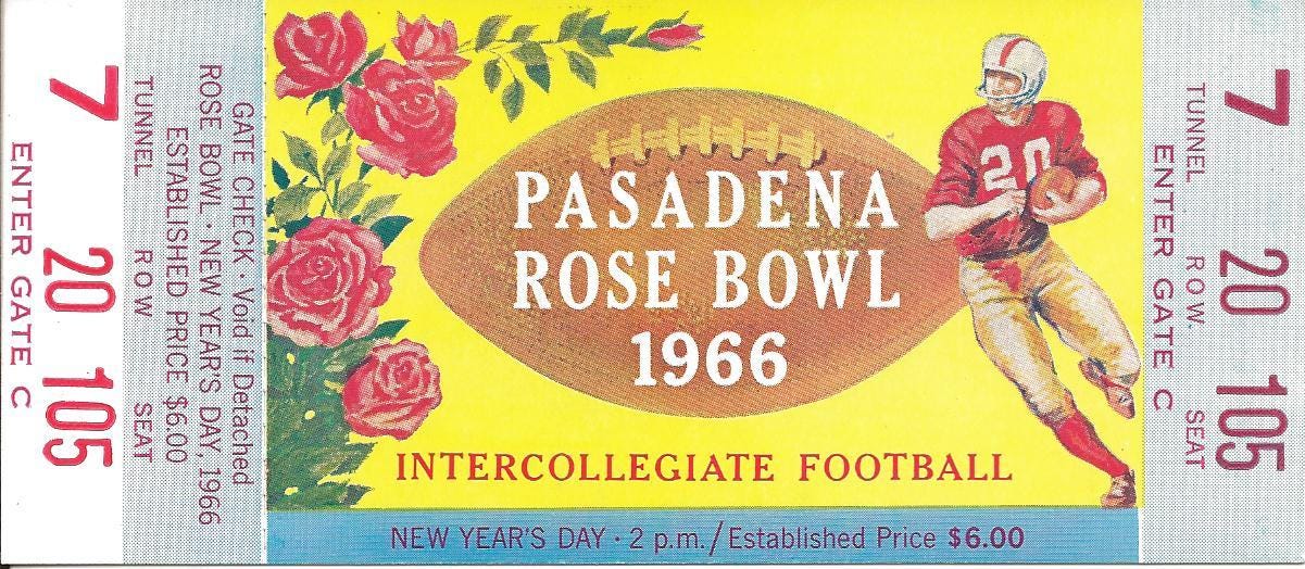 On the one hand, a schedule is just a schedule, but the page is also a period piece. No one would publish something like that today unless they were going for a retro look. The drawings of the players and the typeface are typical of the period. See, for example, the drawing on the 1966 Rose Bowl ticket.