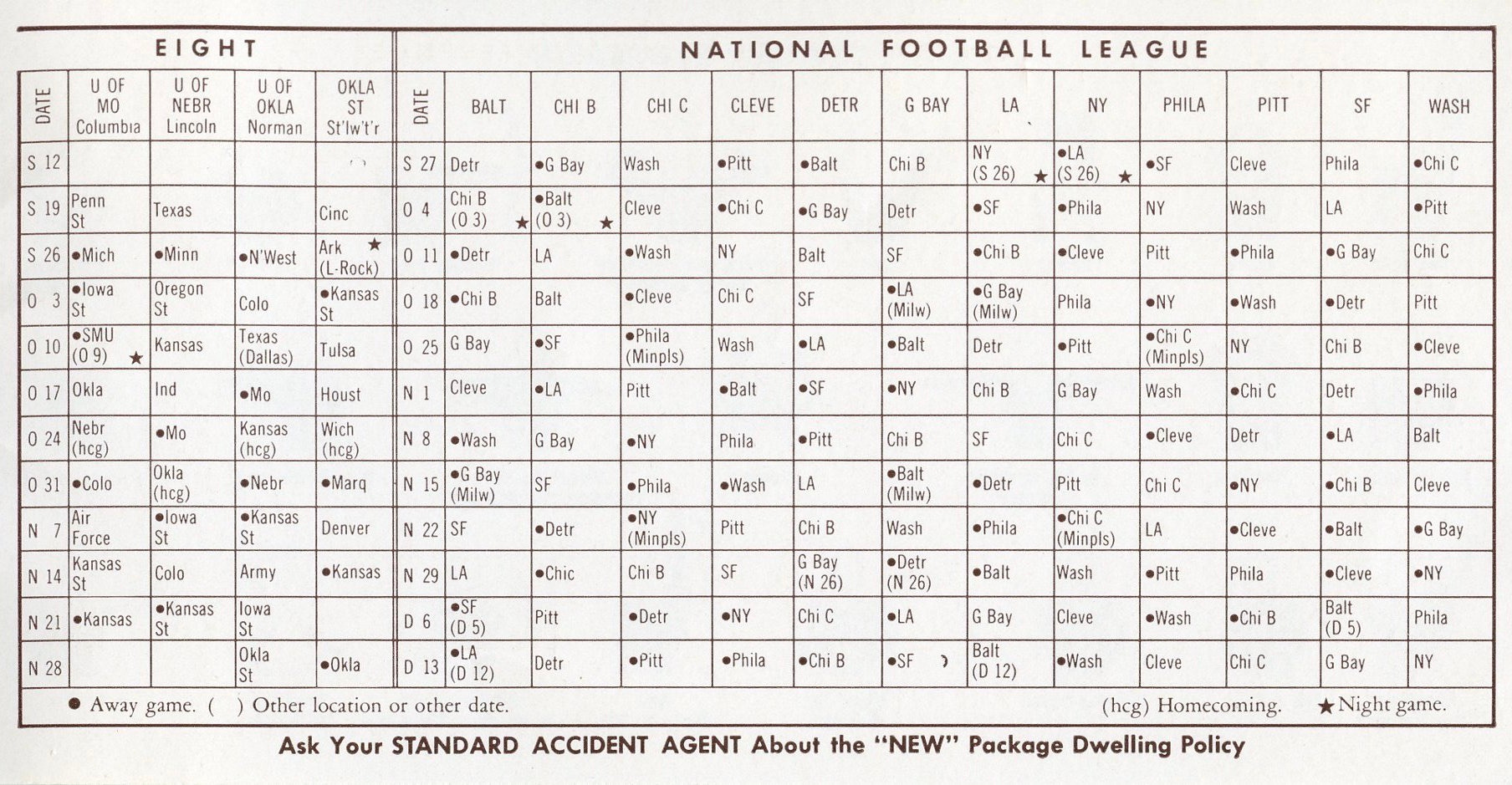 Five Big Eight teams from 1959 still belong to the Big 12. Nebraska skedaddled to the Big Ten, Colorado joined the Pac-12 in 2011, while Missouri traded its stripes for the SEC in 2012.