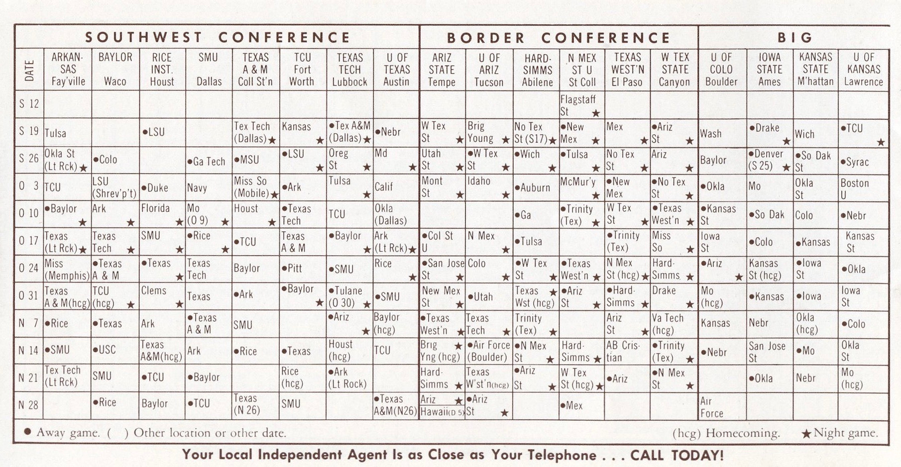 As with the previous article, a promotional booklet listing the schedules for conferences nationwide will facilitate our tour. The booklet, published by the Standard Accident Insurance Company, includes the schedules of twelve conferences and major independents (by region). Several conferences no longer exist, and most others are dramatically different.
