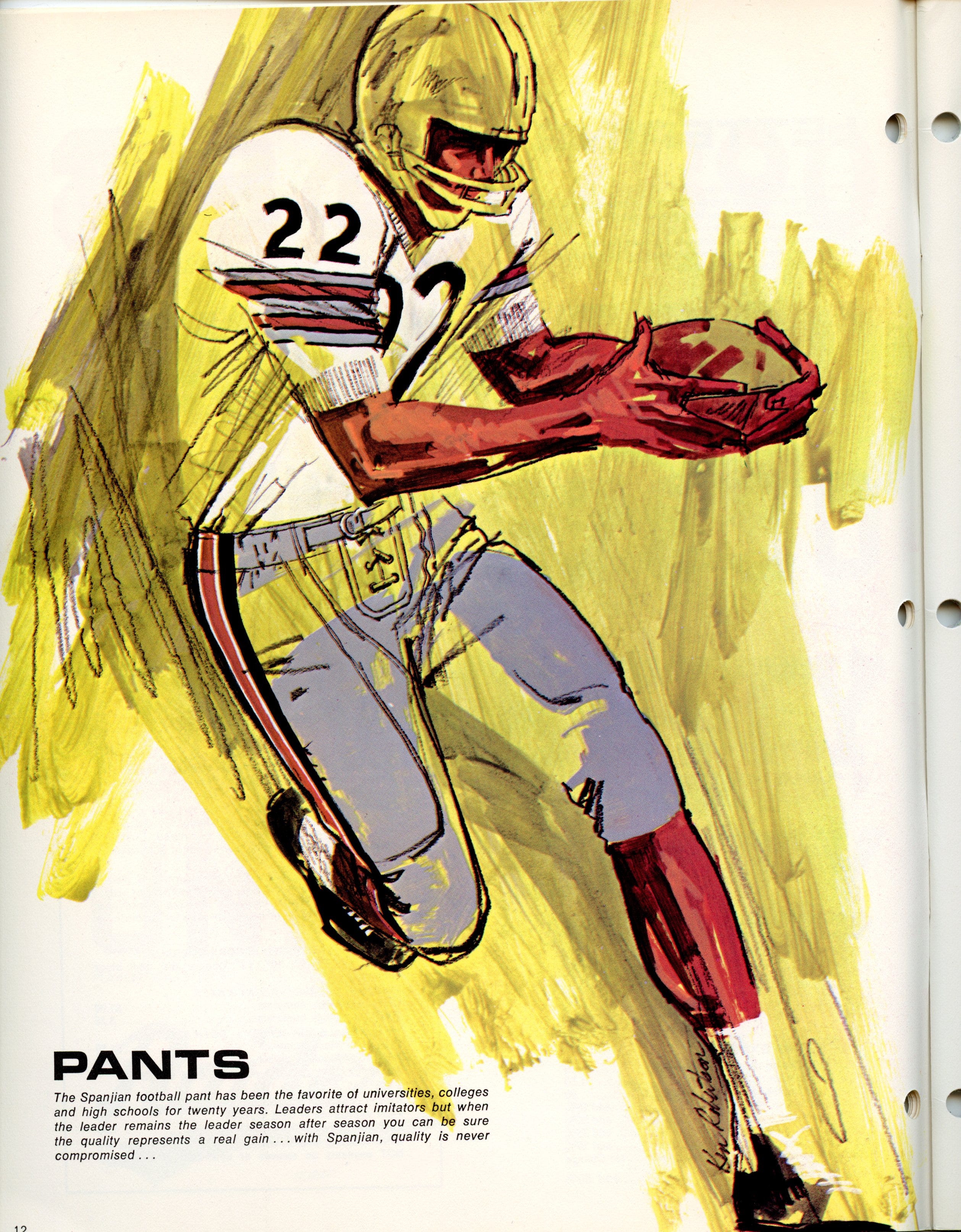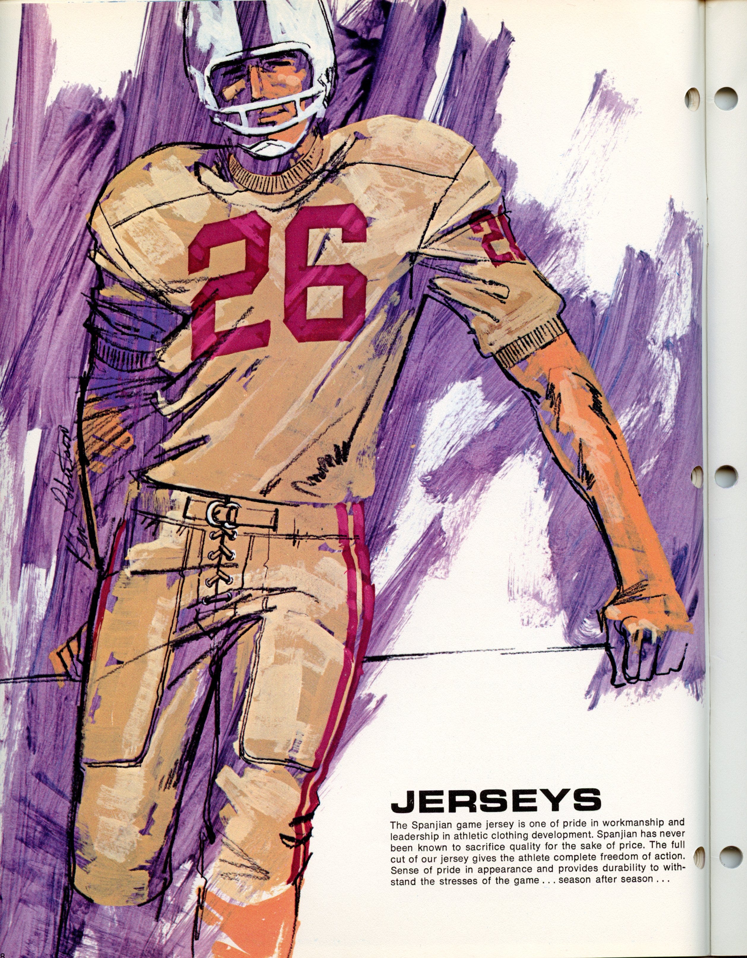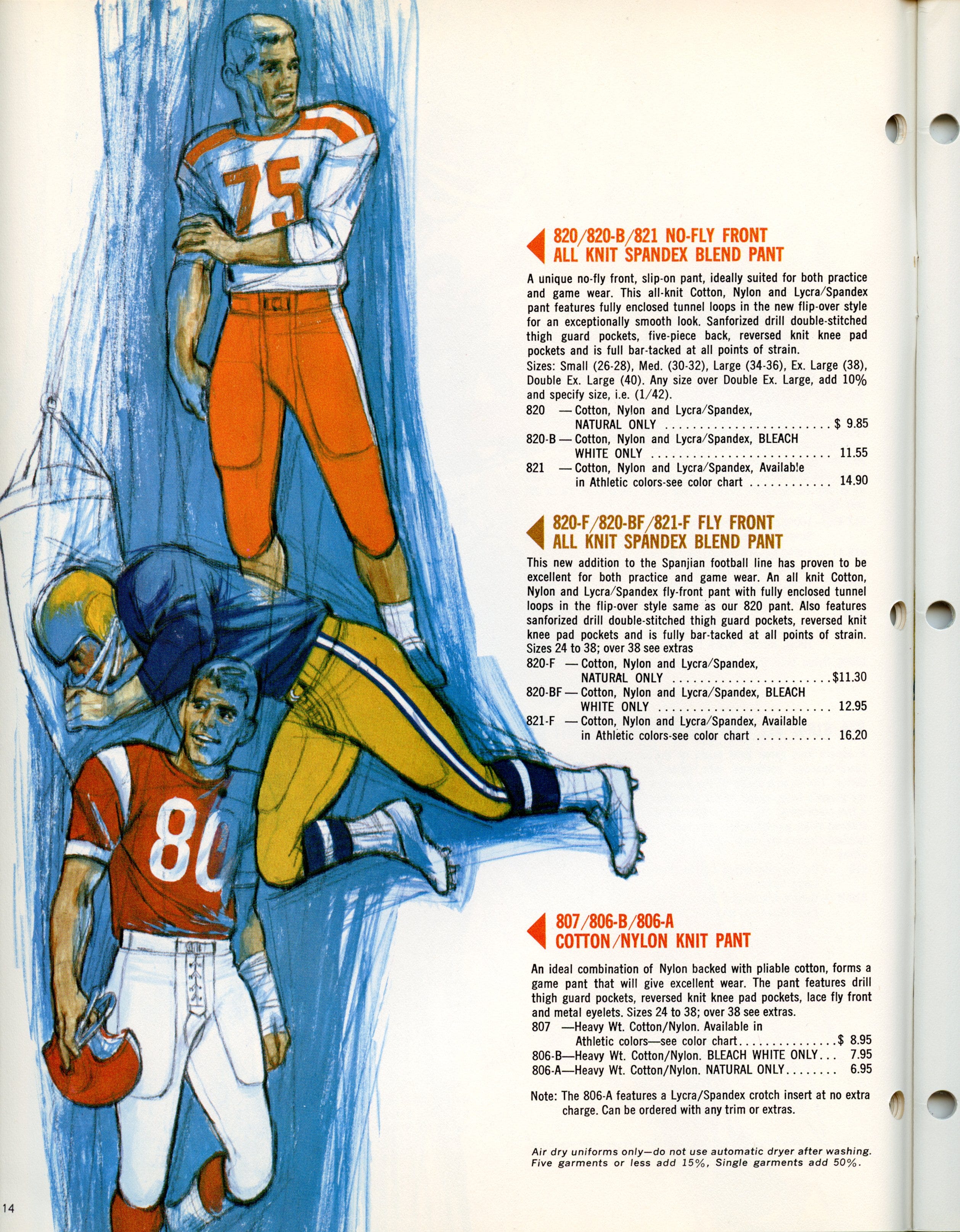 Spanjian Sportswear started in Chicago before moving to the LA area. Focusing on uniforms rather than the various pads and other equipment teams need, they captured about a quarter of the college football market by the late 1960s, in addition to producing uniforms for different sports.