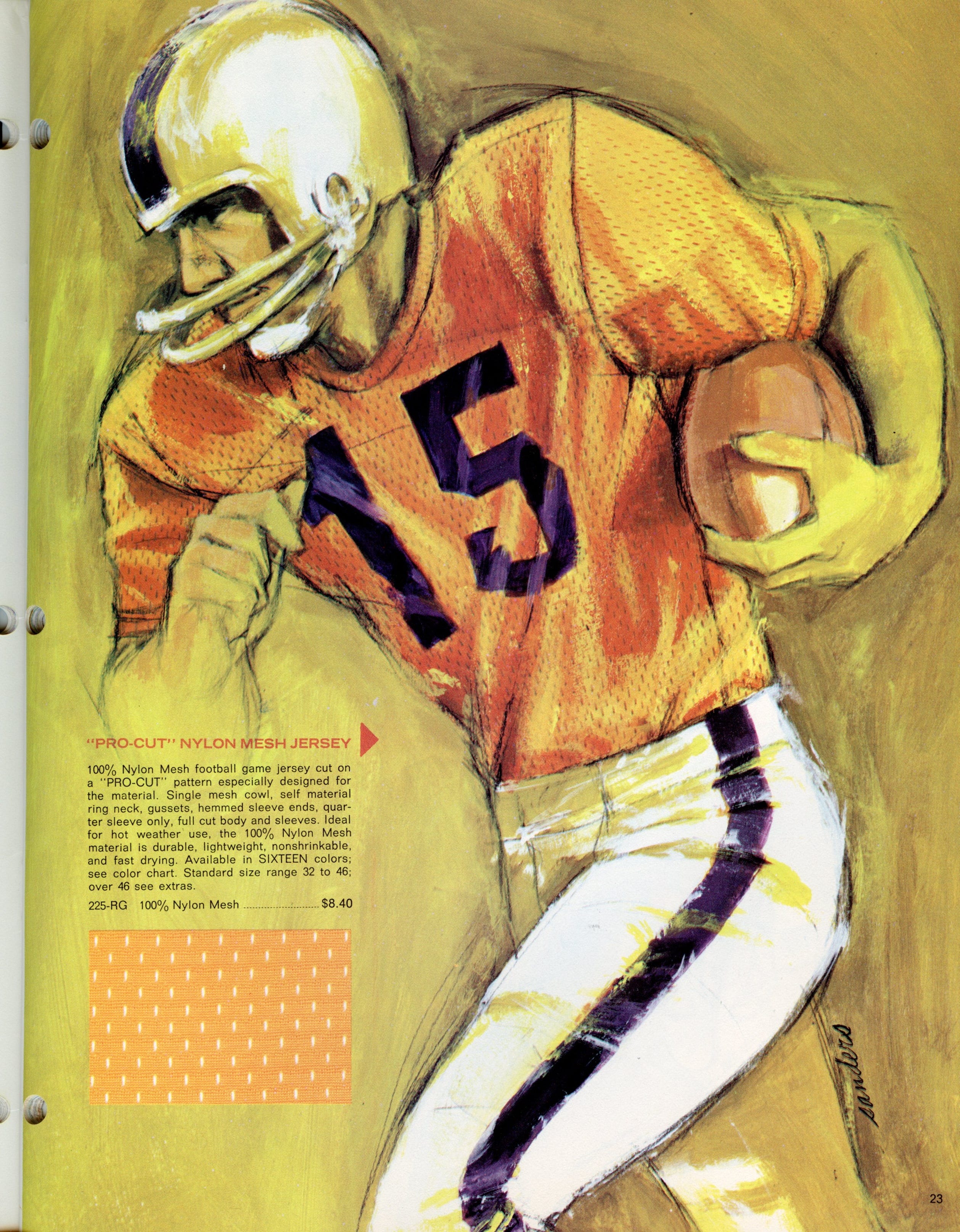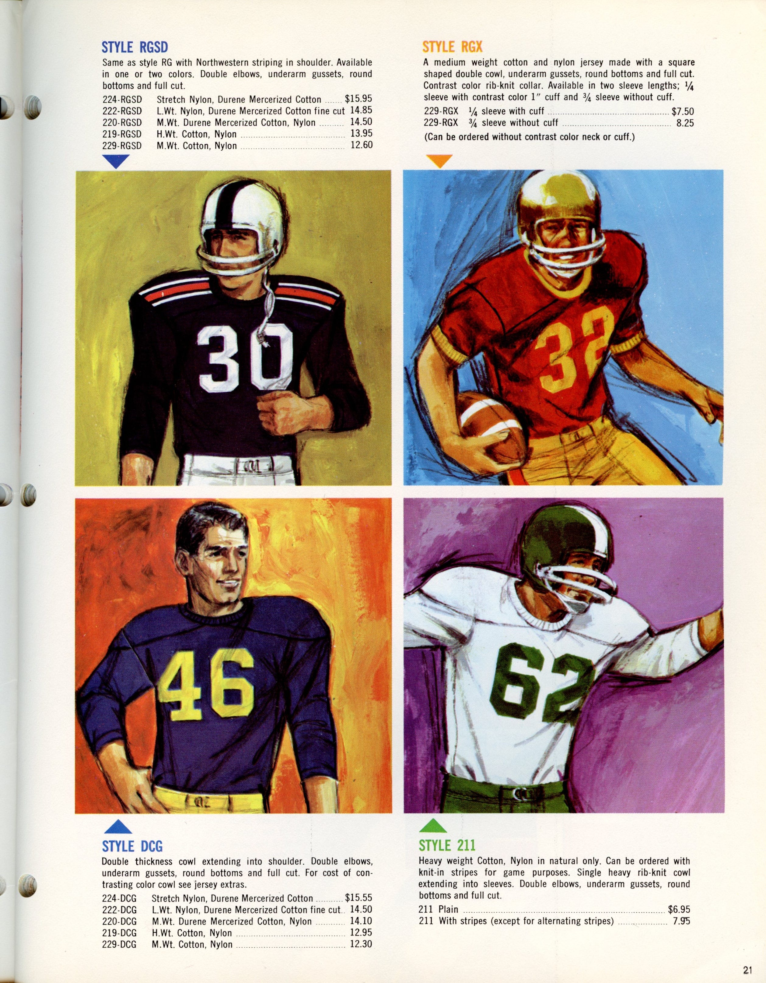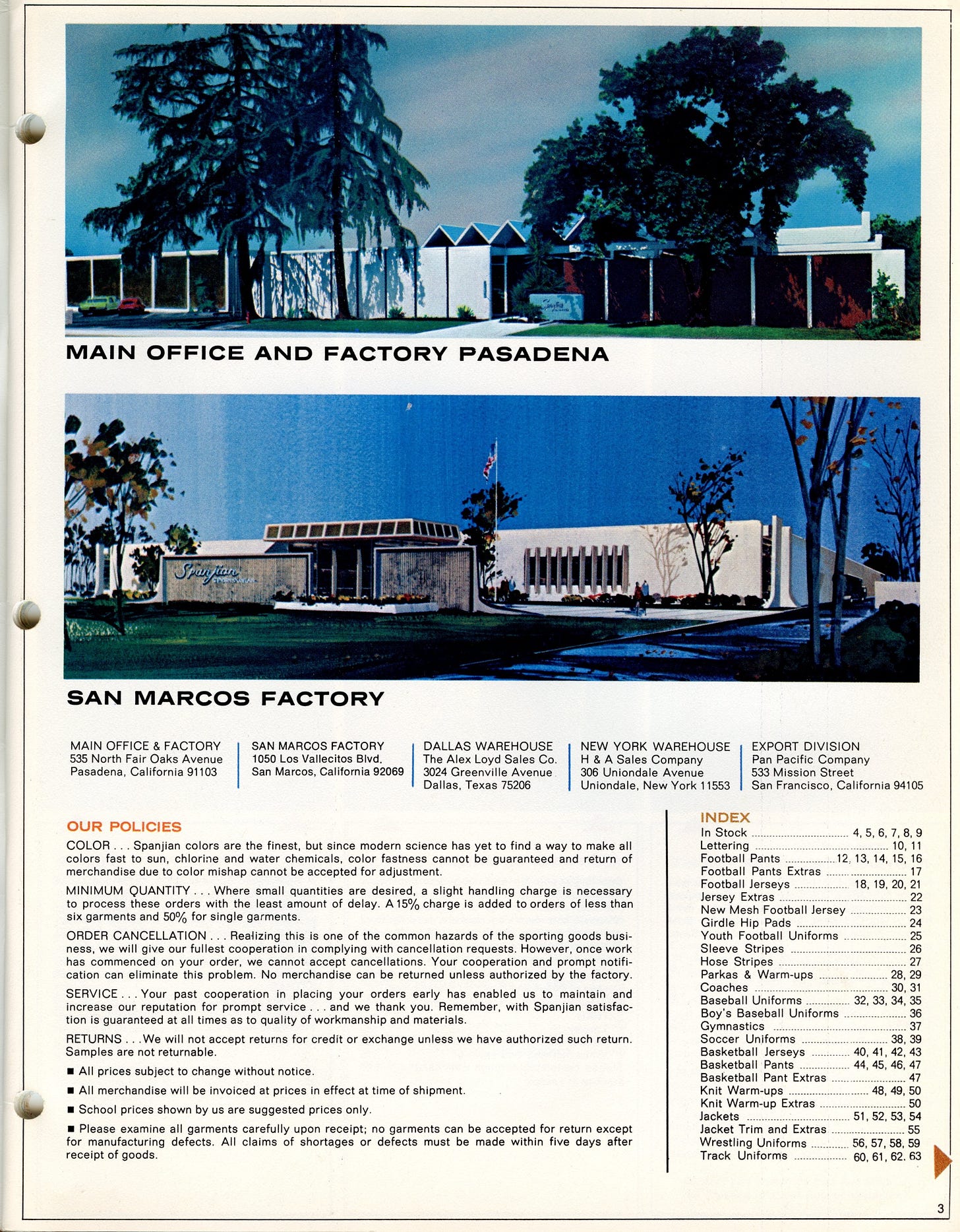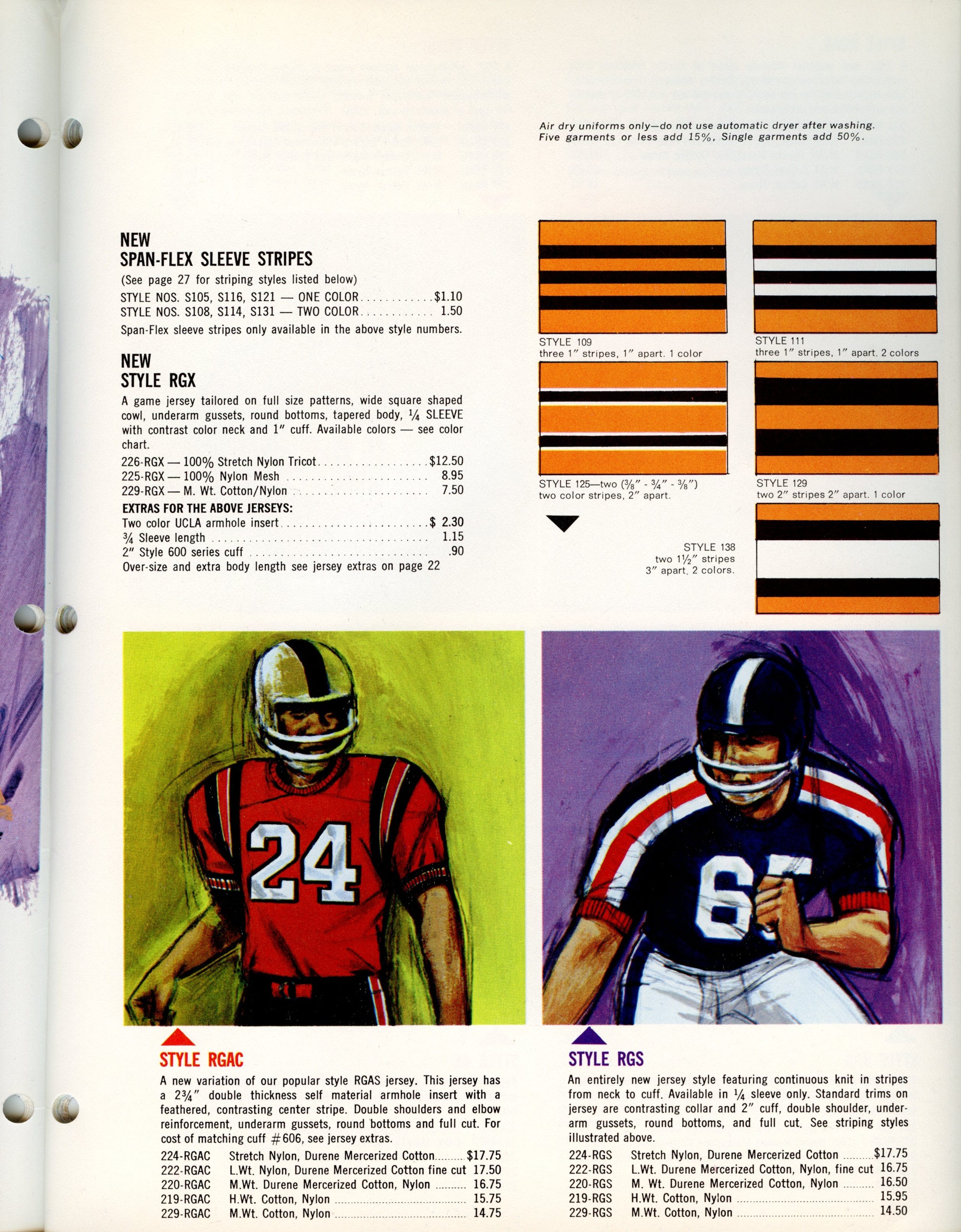 Spanjian Sportswear started in Chicago before moving to the LA area. Focusing on uniforms rather than the various pads and other equipment teams need, they captured about a quarter of the college football market by the late 1960s, in addition to producing uniforms for different sports.