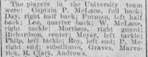 After graduating that spring, he enrolled in law school at Texas. Although Texas played football on an informal basis before 1893, its first recognized team arrived that semester when it played the Dallas Athletic Club and a San Antonio Town team twice each. Though listed as a substitute for the team’s first game in Dallas, Graves does not appear on Texas’ All-Time Letterwinner List.