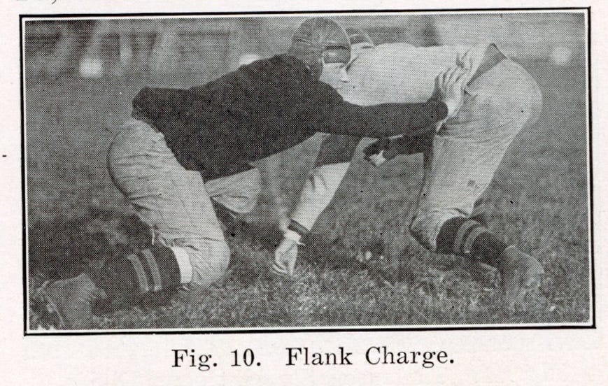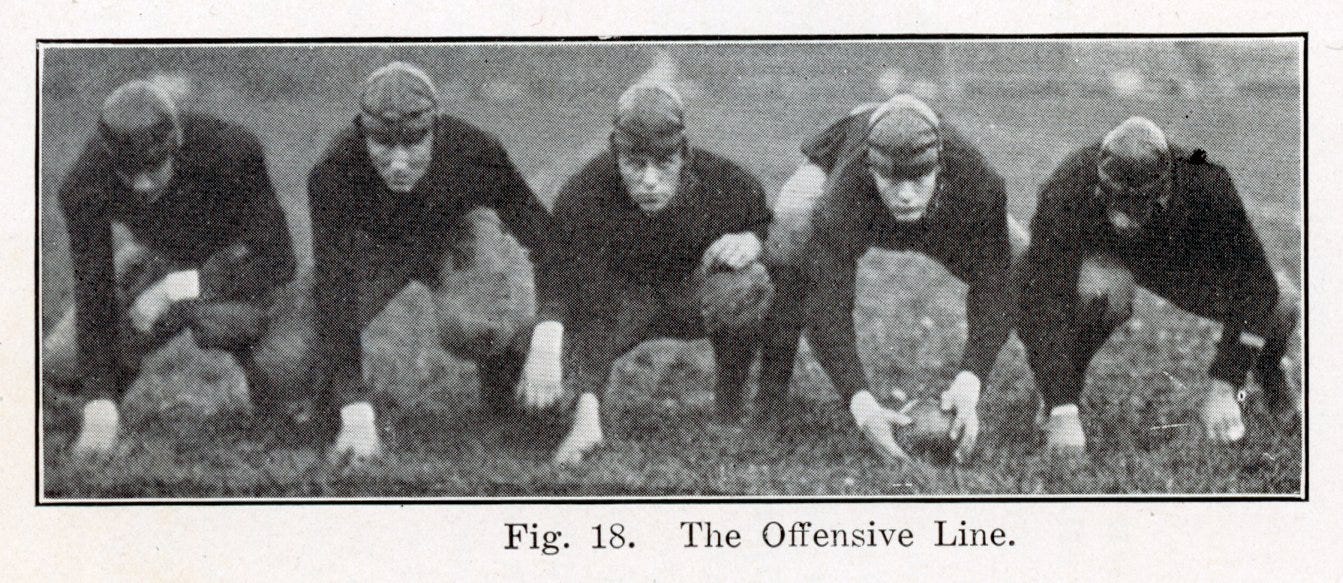 Graves’ Line Man’s Bible is among the earliest books focused on line play. His descriptions and accompanying images show that line play was not for the faint of heart or the fair of face, particularly since few players wore nose guards in 1921 and face masks had not yet arrived.