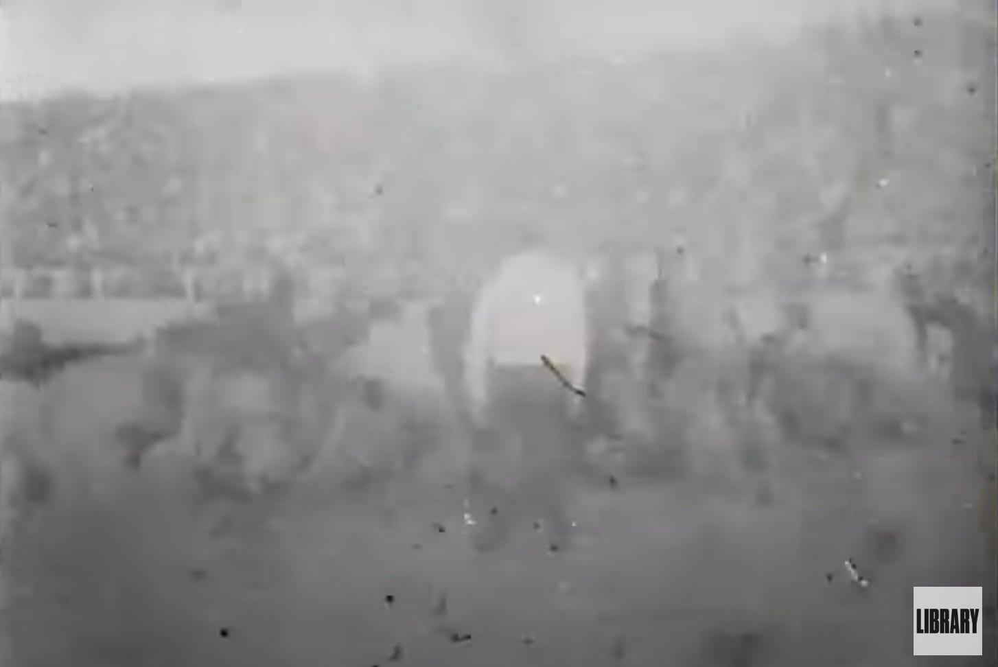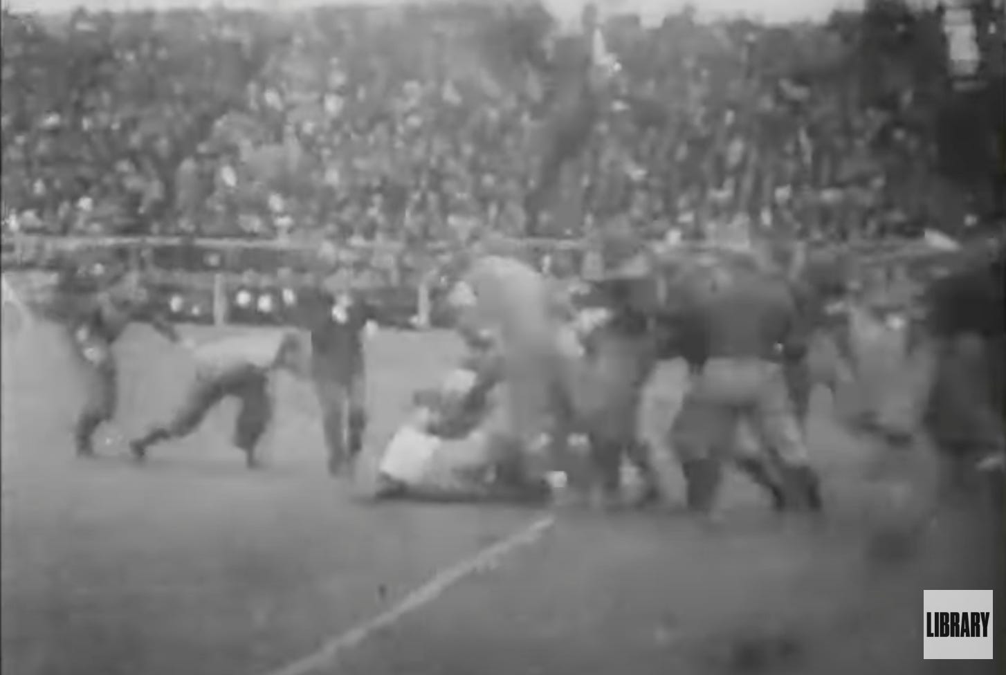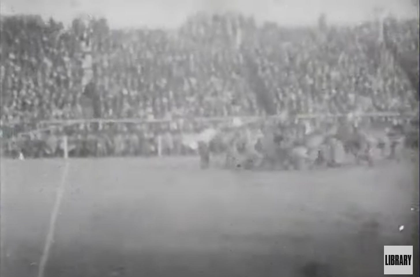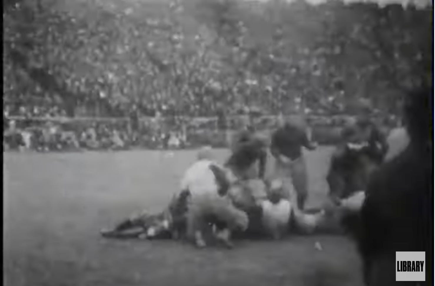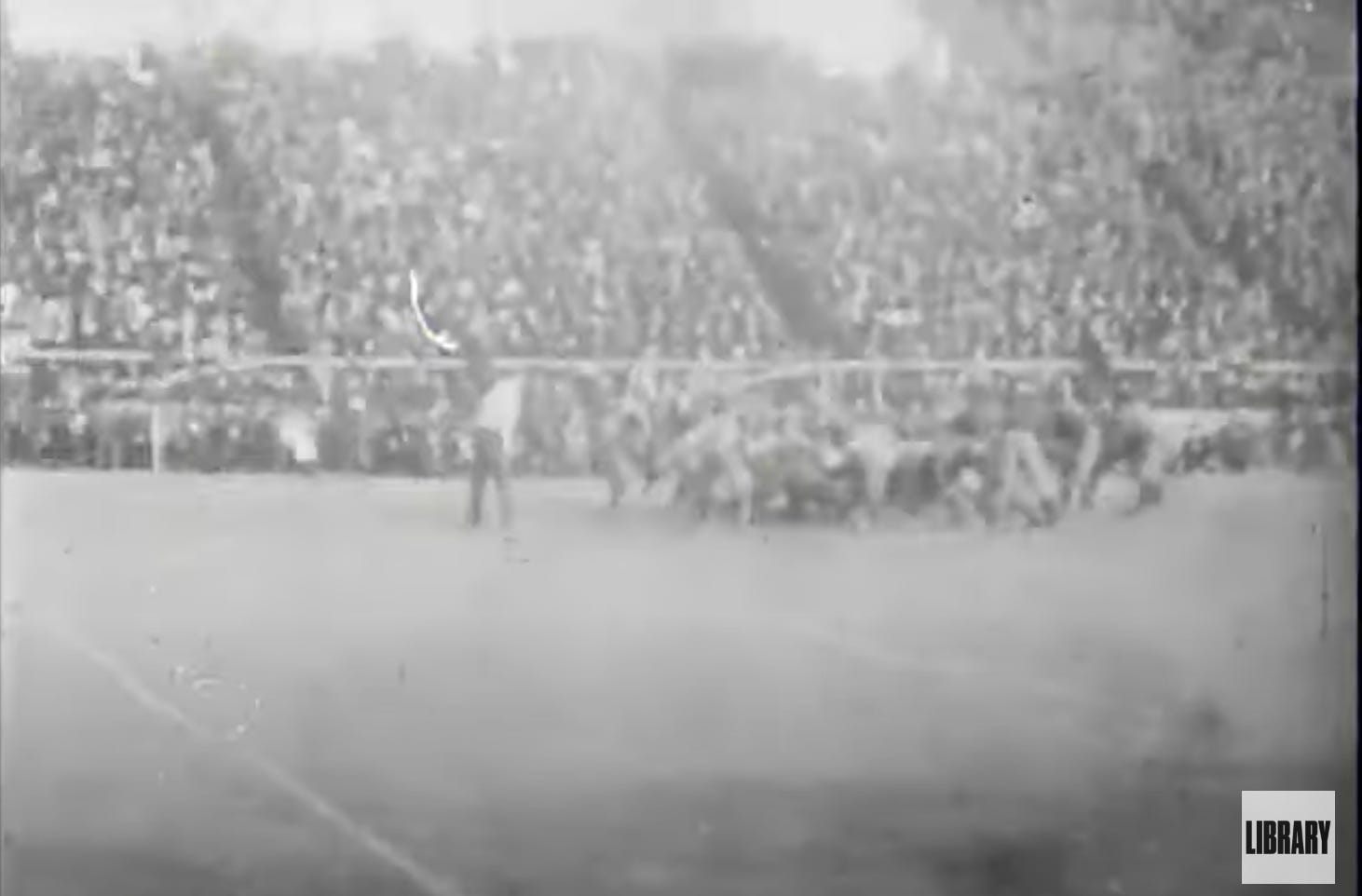 The scene starts with a run up the middle. The film picks up partway through another play, during which the defense gains possession of the ball in the offensive backfield and runs toward the goal line. This was likely a third-quarter Princeton fumble which Yale advanced for 20 yards.