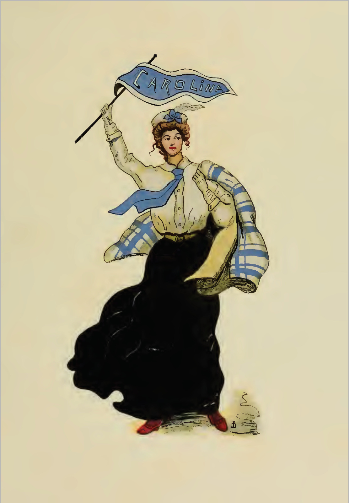 The first image shows a beautiful UNC coed attired in Carolina Blue and waving a pennant. Gorgeous!