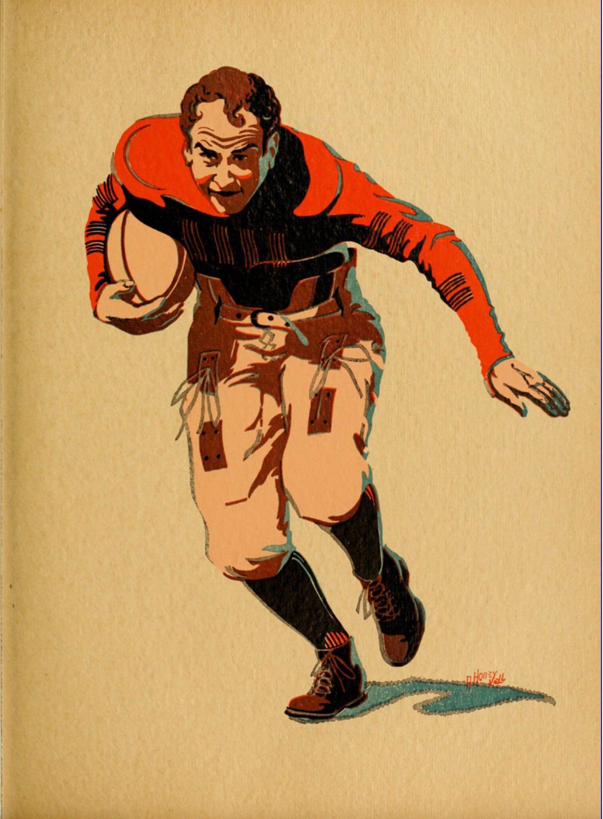 The typical fan that hears the term “football art” likely thinks first of program covers from the 1930s through the 1950s. Other categories of art or design that may come to mind include magazine covers, various forms of advertising, and team logos. Each has produced iconic designs that cross the boundaries of space and time. However, the student-created illustrations in college yearbooks are an underappreciated category of football art.