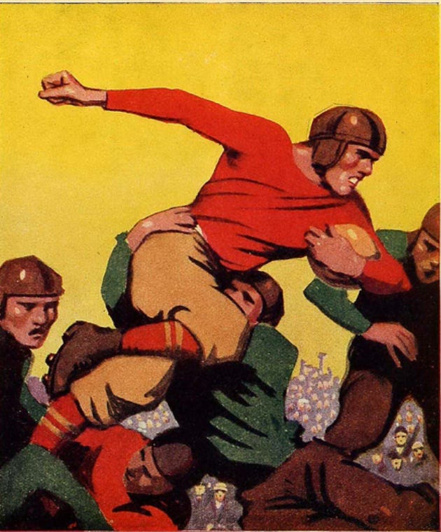 The images shown below were found in yearbooks published between 1907 and 1931. Their primary themes include ball carriers, cheering fans, and battered heroes soaking in the thrill of victory, often draped in a blanket. Would other themes matter?
