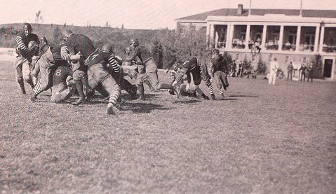 The 1920 Pacific Fleet team went undefeated against the University of Nevada, San Francisco's Olympic Club, Portland's Multnomah Club, and in the Armistice Day game against the Ninth Army Corps, a game Navy won 124-0. (In the pre-NFL days, the Olympic and Multnomah clubs had numerous ex-college stars and were competitive with top college teams.)