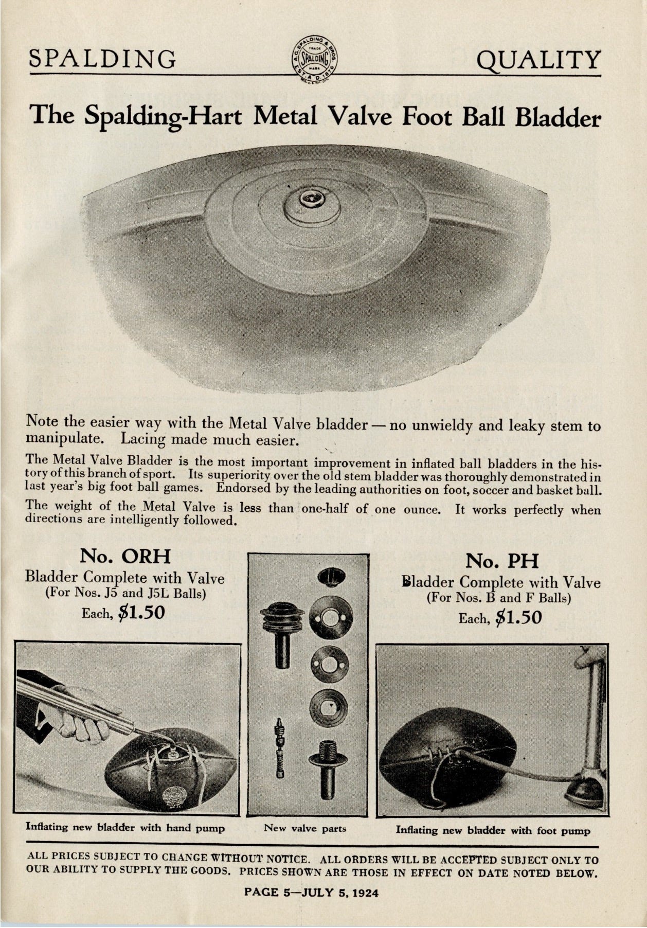 Silly me. Page 5 of the 1924-25 catalog shows Spalding did not move directly to Go and collect $200. Instead, they took an intermediate step. Rather than making the valve flush with the leather, Spalding positioned the valve in the same spot as the stem valve -under the laces. Customers still had to unlace the ball to access the valve, so they saved a little time, but it took more work than is required today.