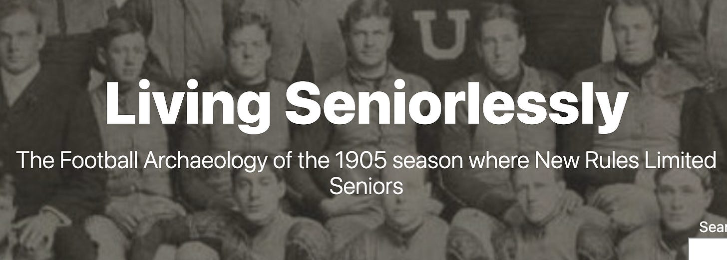 Pigskin Dispatch podcaster Darin Hayes and I discussed a recent TidBit about the year of living seniorlessly, which came in 1906 when the Western (Big Ten) Conference limited athletic eligibility to three years and did so retroactively. That meant those who had played during the freshman, sophomore, and junior seasons suddenly were not eligible as seniors.