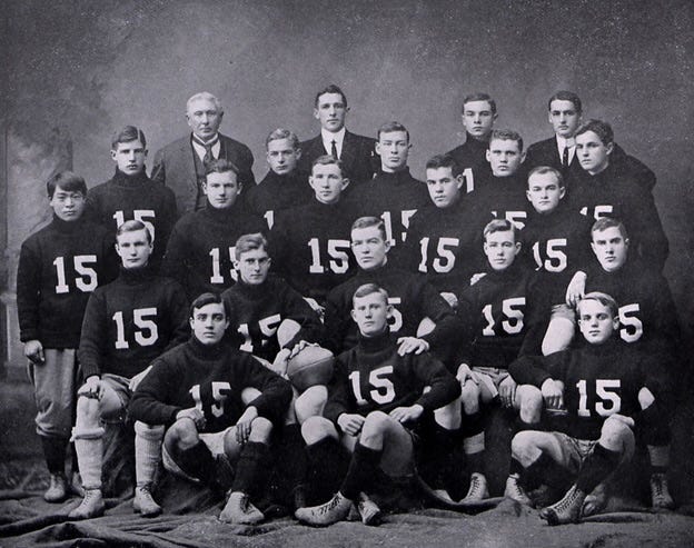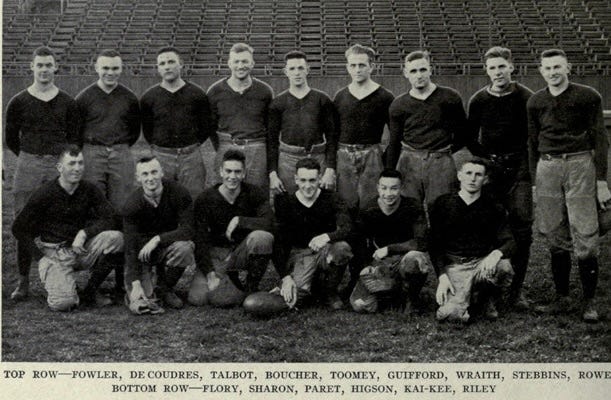 We’ll return to Achiu’s story tomorrow, but to better understand his experience, I looked into pre-1920s AAPI players in the college ranks. No database tracks the ancestry of college football players, so I relied on newspaper archive and web searches. I surely missed some players, but Asian and Pacific Islander football players were curiosities and received publicity for their ethnicity more than their play on the field. The newspapers commonly described them using terms considered slurs today, most of which I omitted from the article. (Note: The research excluded the players at the University of Hawaii because they played their first intercollegiate game in 1920.)