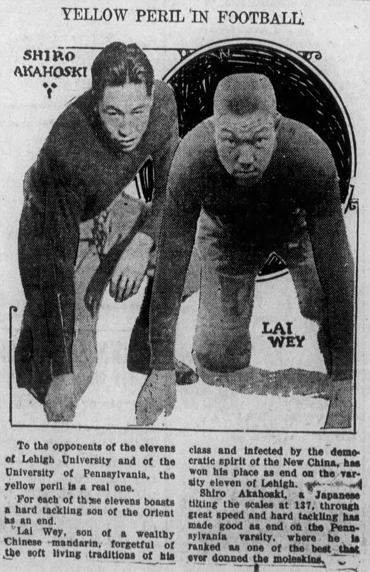 I did not identify any Pacific Islander college football players before 1920, which seems odd given their prominence in today’s game. The situation likely stems from most of the Chinese and Japanese football players at American colleges coming from prominent families with the means to send their sons to the United States. That was less likely the case with Native Hawaiians and Samoans of the time.