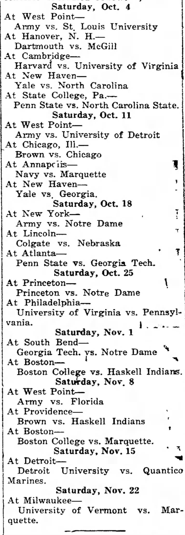 As it turned out, Tad Jones underestimated his Yale squad, which went 6-0-2, Josh Hawley led Dartmouth to a 7-0-1 season, and Columbia went 5-3-1, though the tie and two losses came after Percy Haughton passed away during the season.