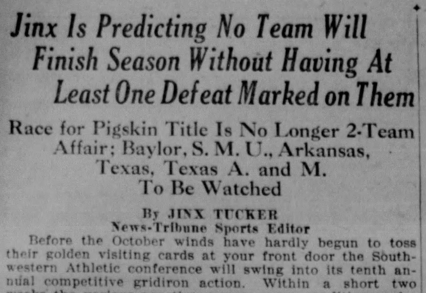 Ol ' Jinx jinxed himself since two teams went undefeated in the conference: Baylor went 4-0-1, and SMU went 2-0-4.