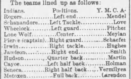As detailed in the school newspaper, The Indian Helper, following the game, the teams rode back to the YMCA to shower. After a quick dinner at the hotel, Carlisle returned to the Y for a prayer meeting, a musical and literary program, and a banquet.