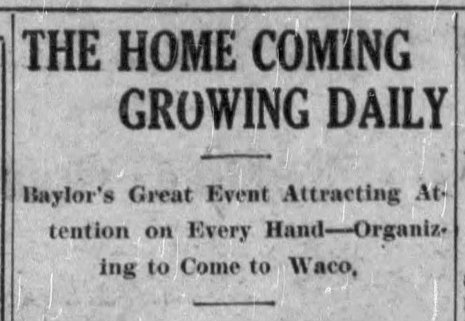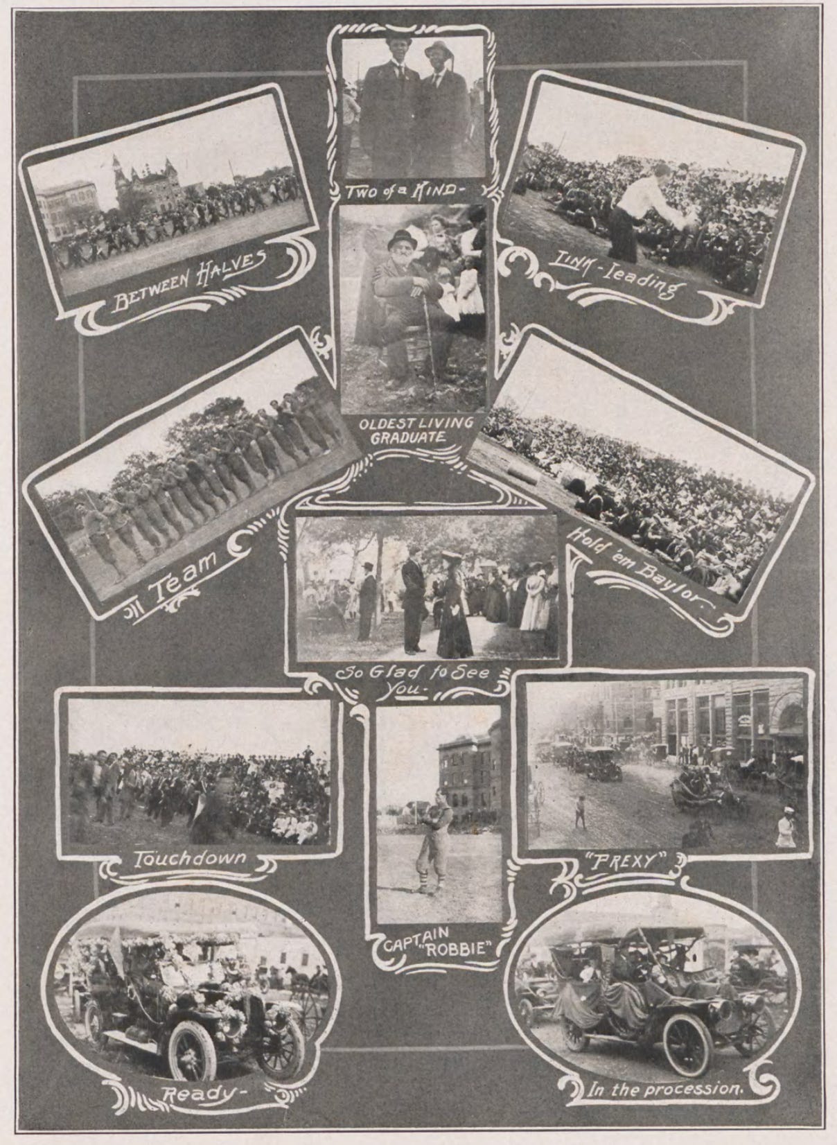 After all the planning, between 3,000 and 3,500 alums returned to Waco for the first-time event they called Homecoming on the Wednesday and Thursday of Thanksgiving week. I've never been to Waco, so I may be missing something, but that was a pretty good turnout for 1909.