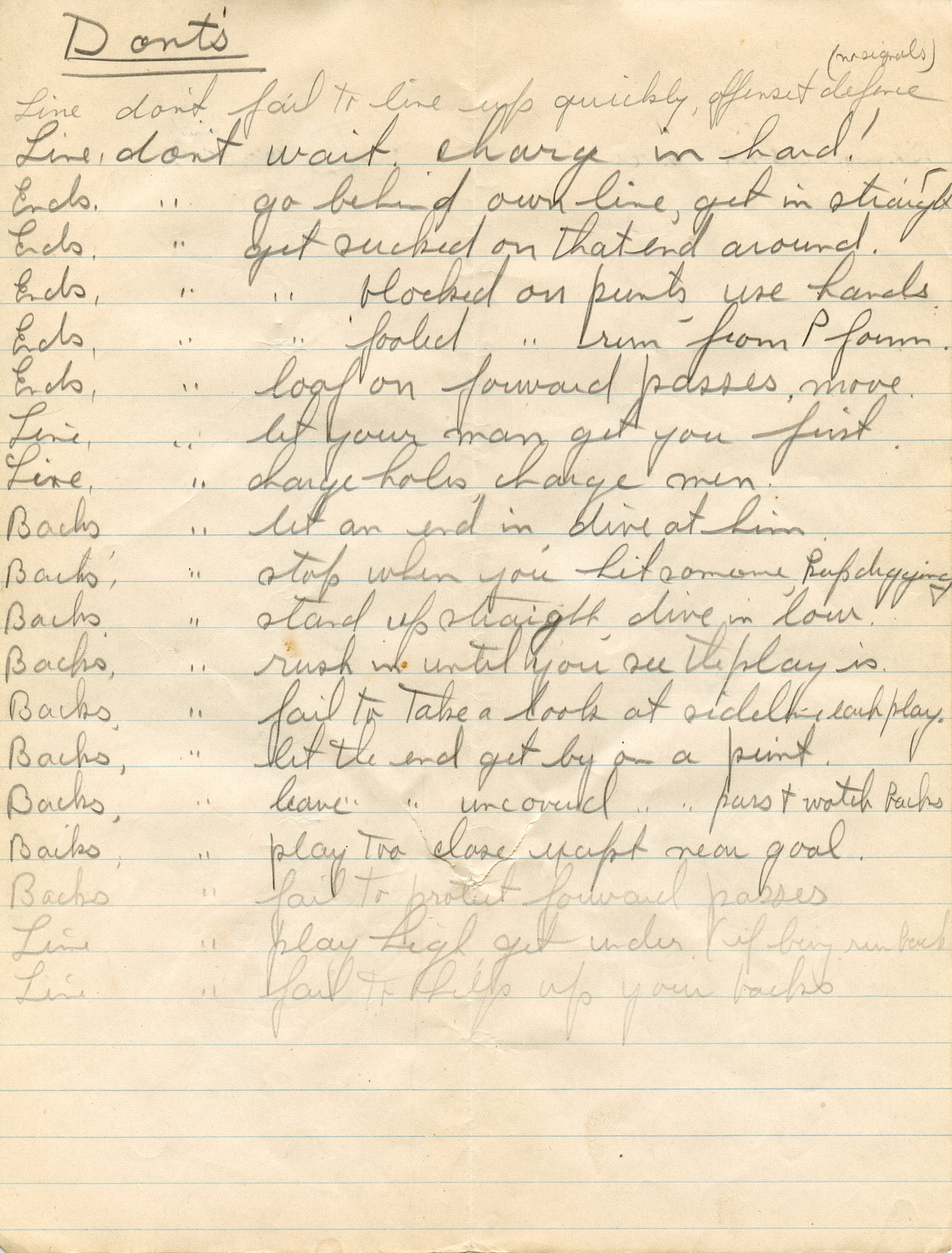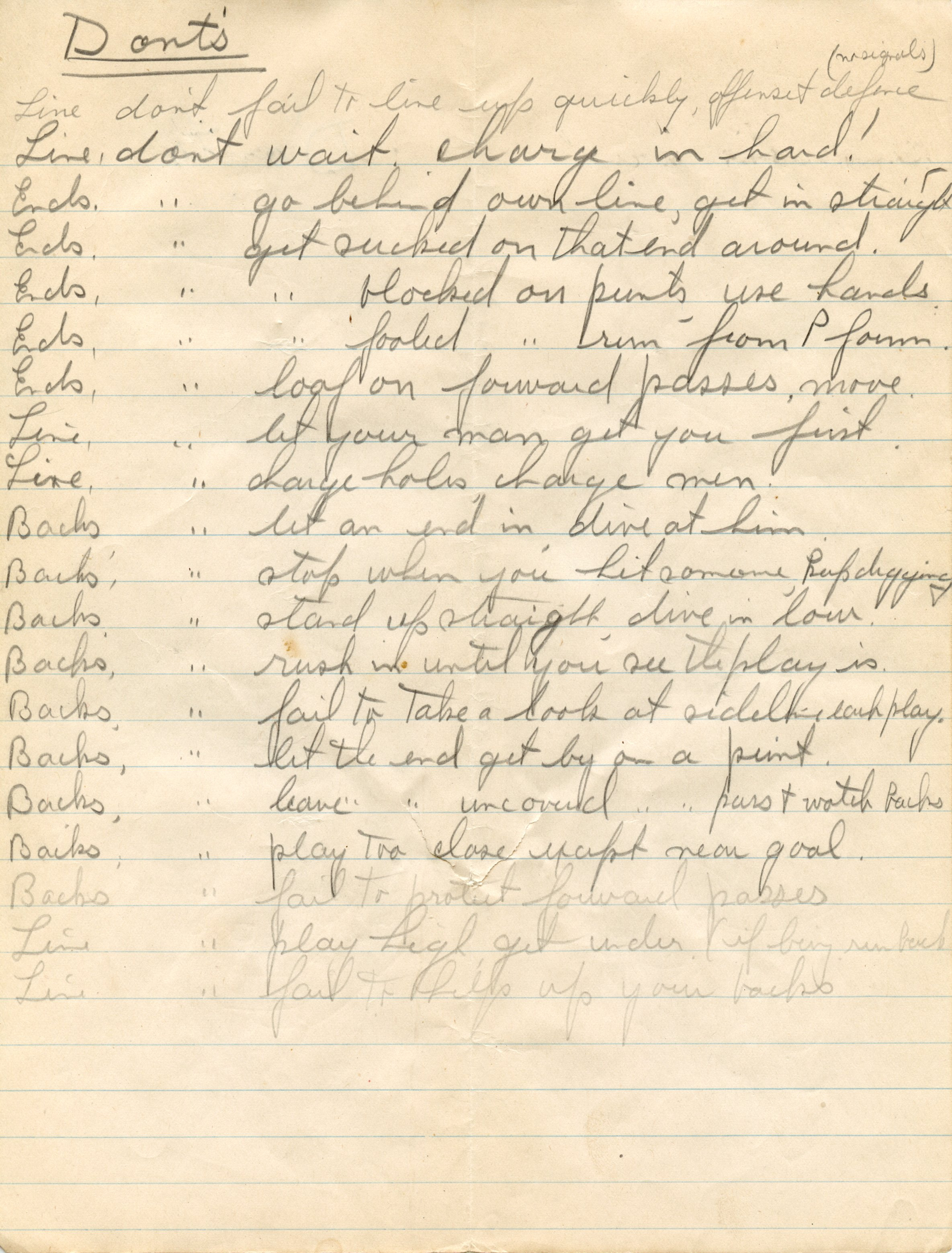 The notes are of two types. First, there are the coaching shibboleths or bromides, and then there are the play designs. So, first things first...