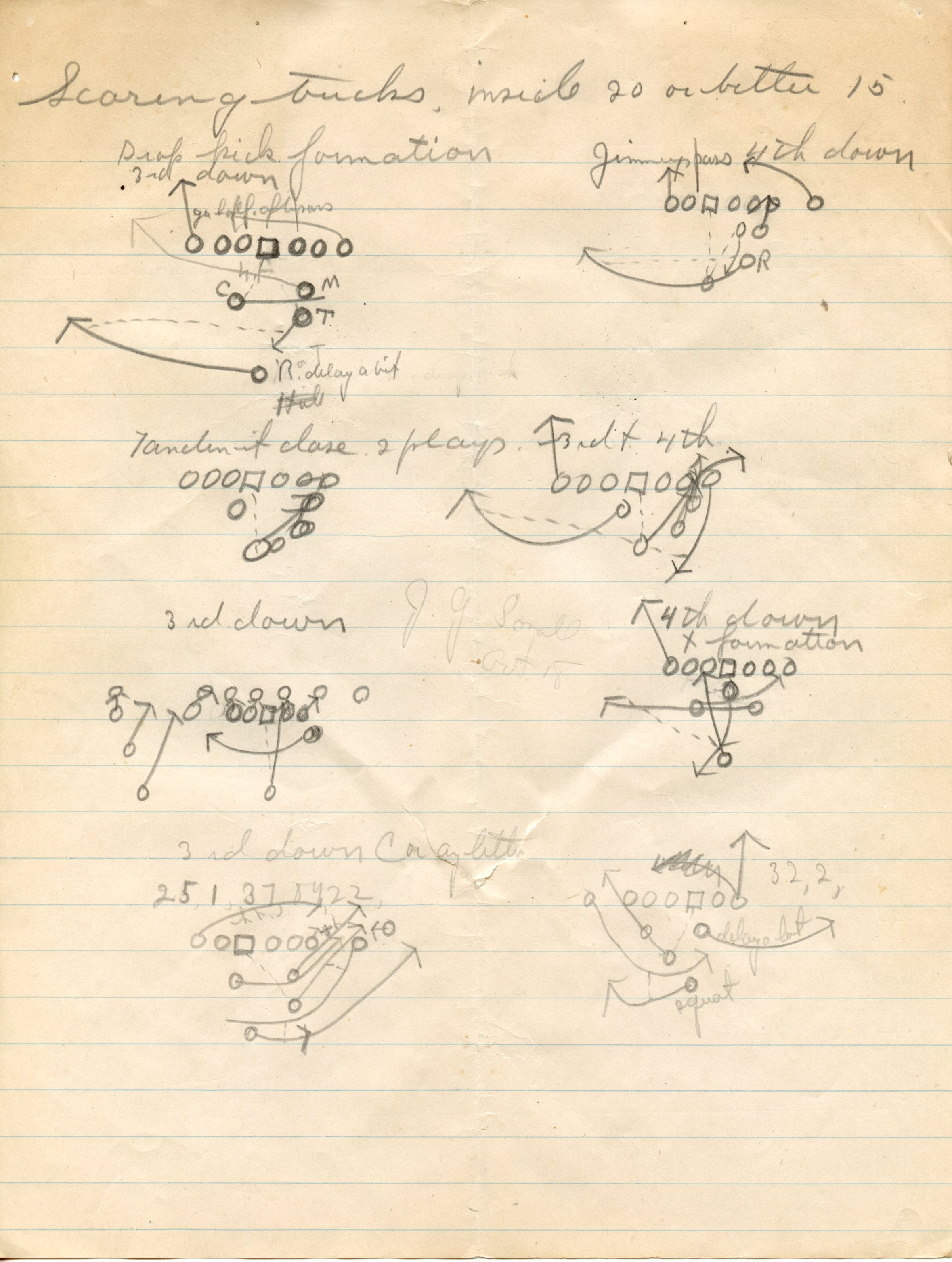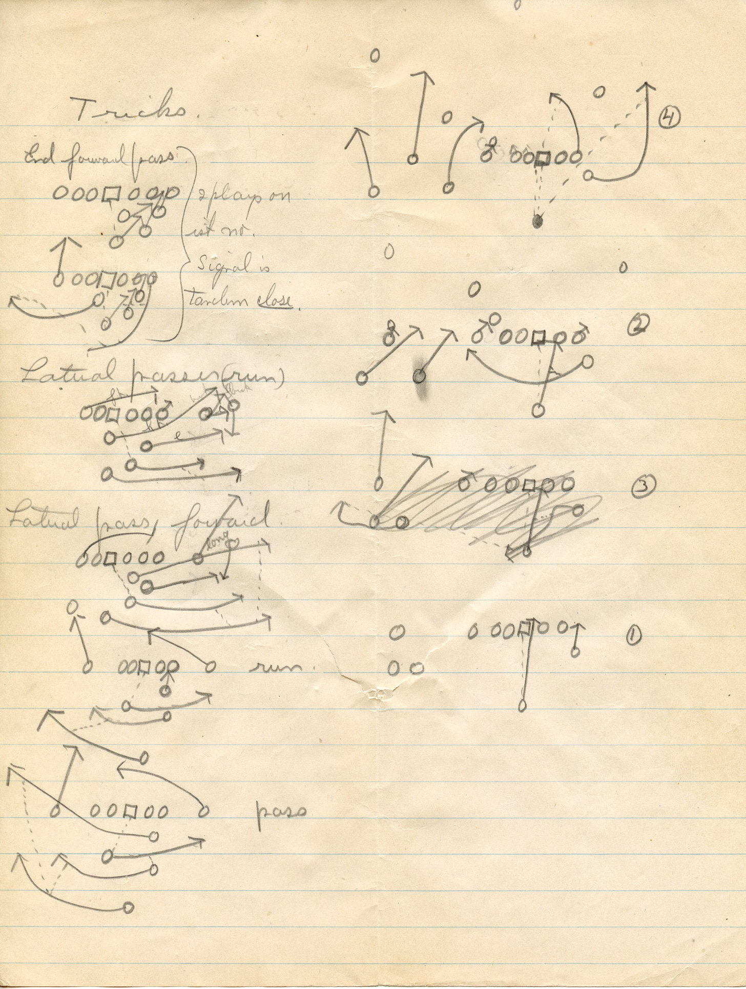 Besides the bromides, there were seven pages of plays, including one that may have been a scouting report. For space and attention span considerations, I’ll cover only a few.