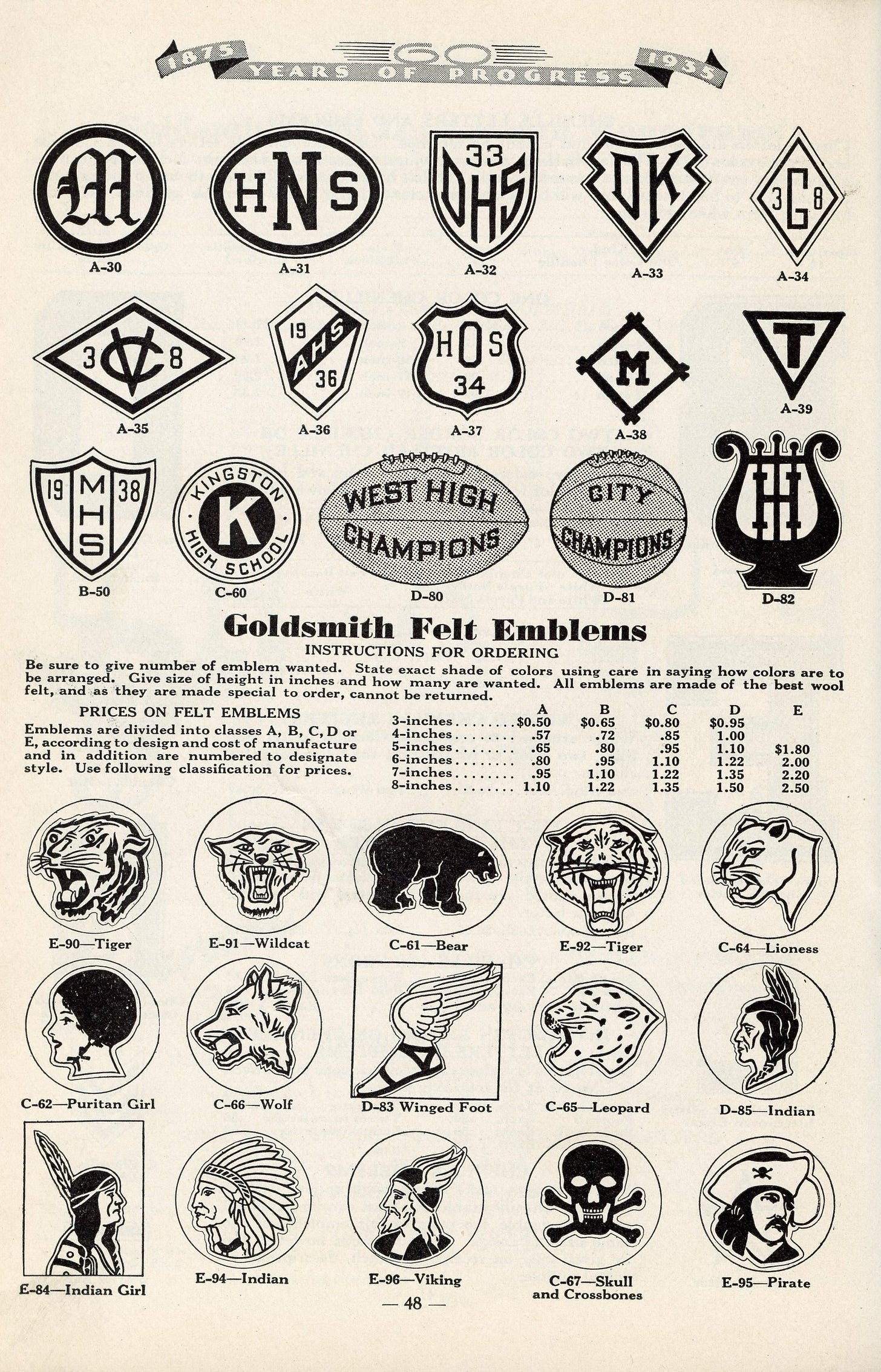 Like the felt letters and monograms, emblems could be used for warmups for many sports and letter sweaters and jackets.