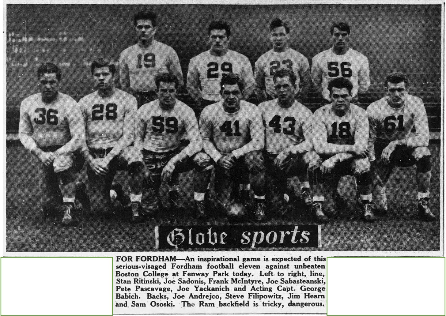 Besides home games with North Carolina, West Virginia, St. Mary's, LSU, Missouri, and North Carolina Pre-Flight, Fordham played at Purdue, Tennessee, and No. 3 Boston College, managing to go 5-3-1 on the season.