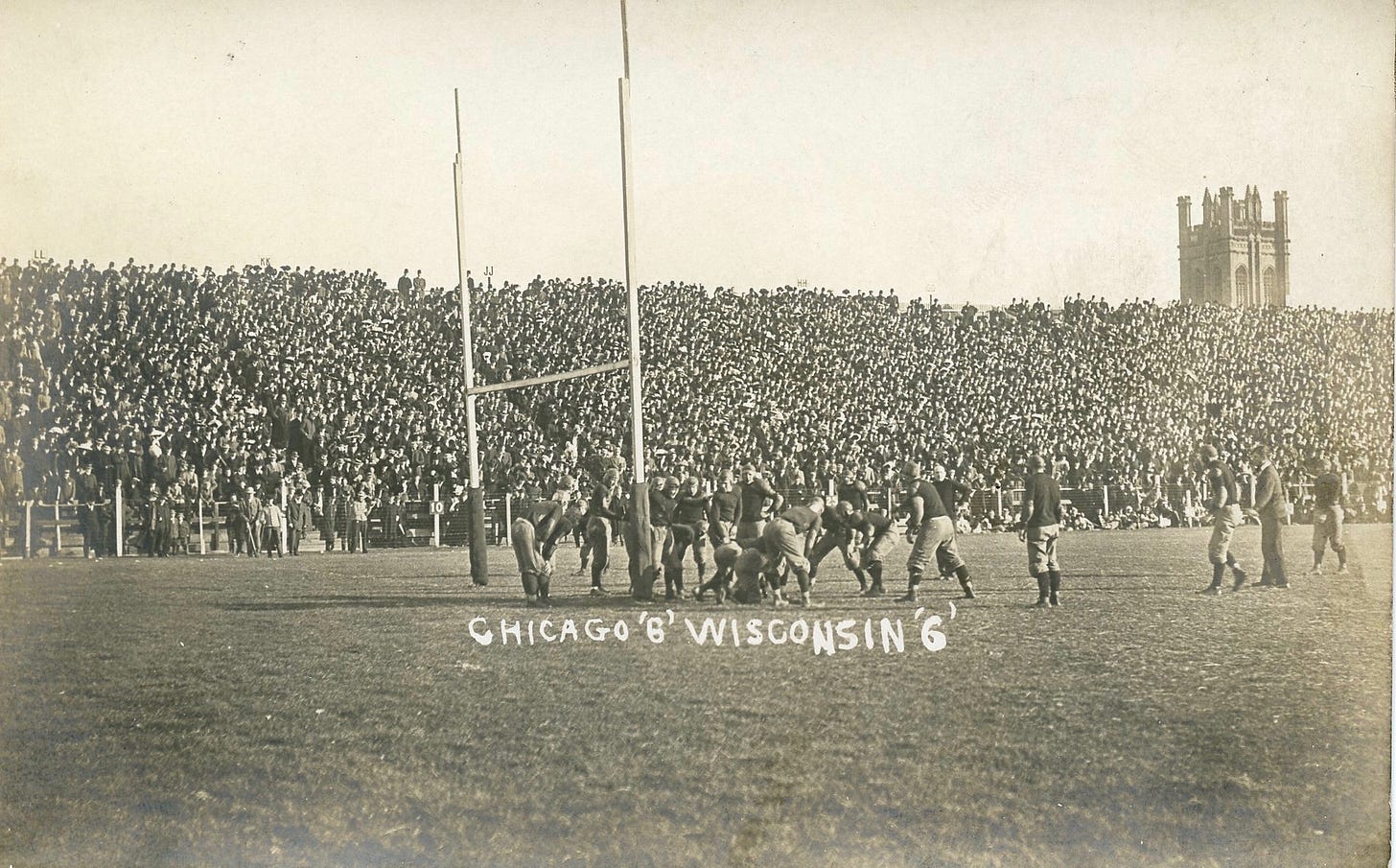 A few news reports indicate that Stagg tied mattresses to Chicago’s goal posts when they hosted Minnesota in 1906, and a 1909 RPPC confirms they padded them when they hosted the Badgers in 1909. That all suggests Stagg was a paddee, not the padder.