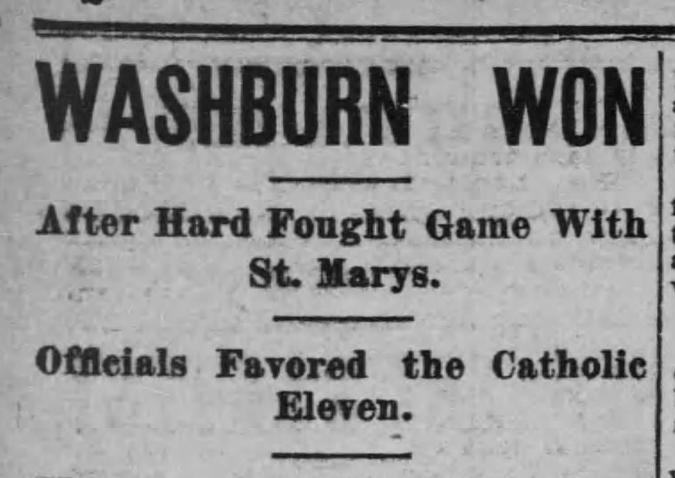 Before the 1920s, it was also common for newspapers to refer to college teams based on the religious affiliation of the school, leading to subheadlines like the one below following St. Mary's loss to Washburn, a game that likely decided the state small school title.