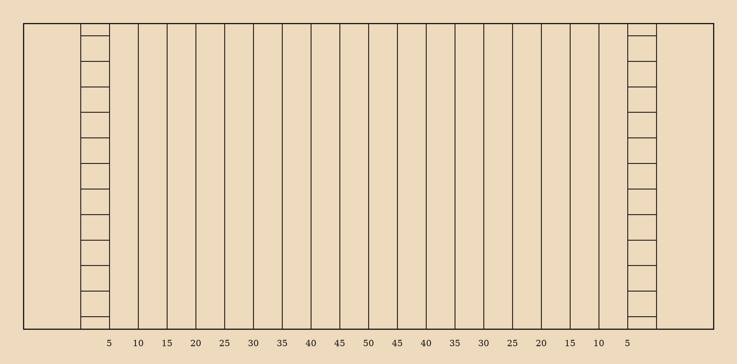 A. W. Briggs developed a unique solution I hadn’t encountered when I wrote the article above. He added stripes running perpendicular to the yard lines between the goal lines and 5-yard lines, so his markings looked like this: