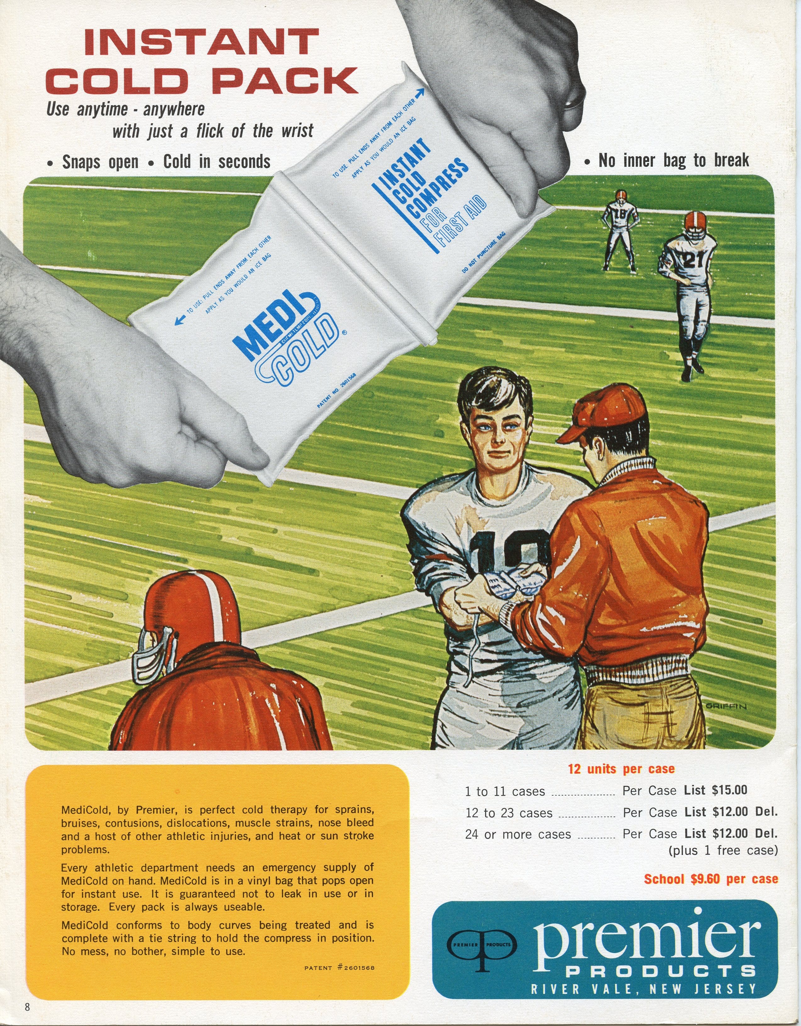 That situation changed in 1959 when Albert A. Robbins invented the modern cold pack. Rather than using water, Robbins created a packet within a packet in which previously separated chemicals became ice cold when the chemical solutions became mixed. Initially intended for the food industry, the approach entered the athletic training world a few years later. Chemical cold packs took the training world by storm. They were portable, quick to become cold, convenient, and modern.