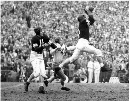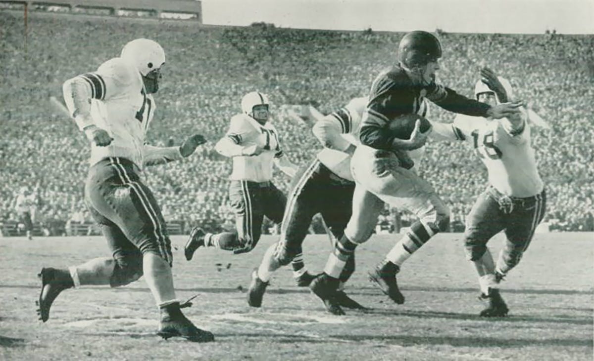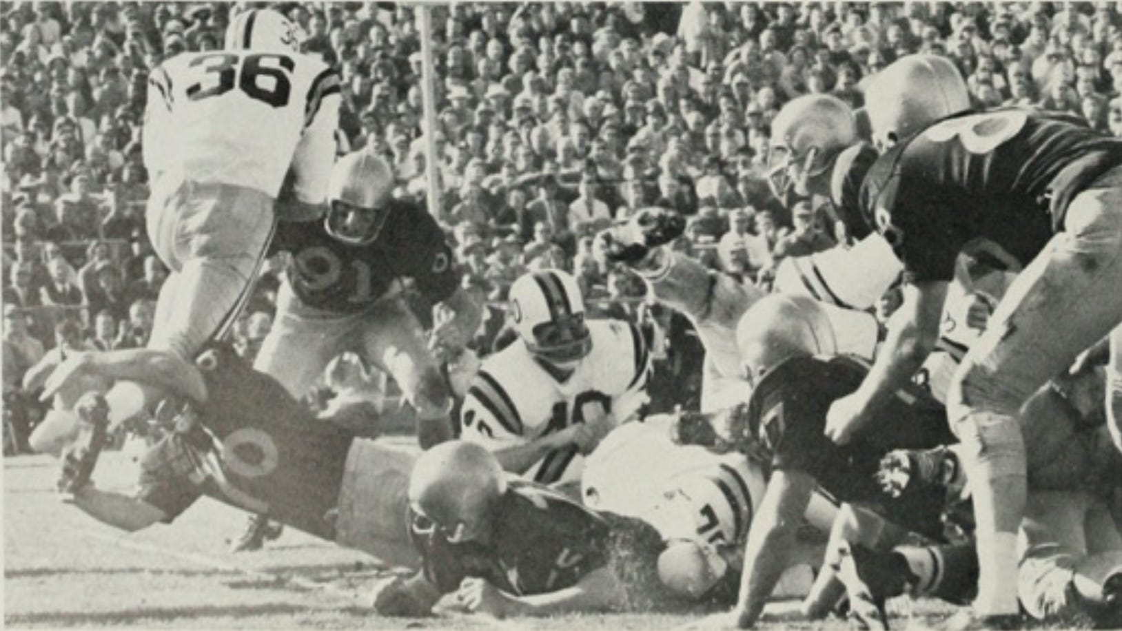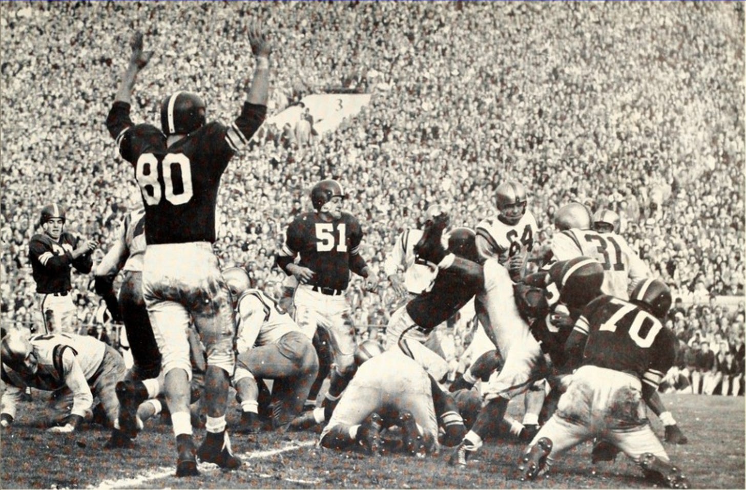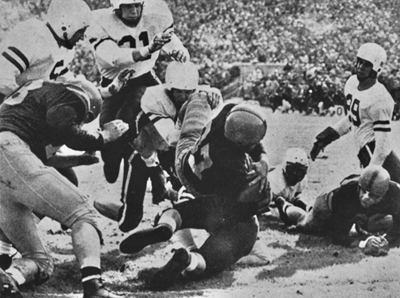 1958: Ohio State and Oregon both bore TV numbers on their helmets.