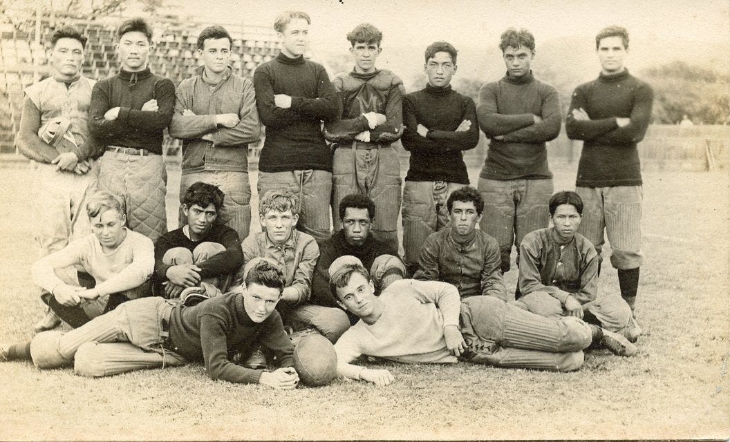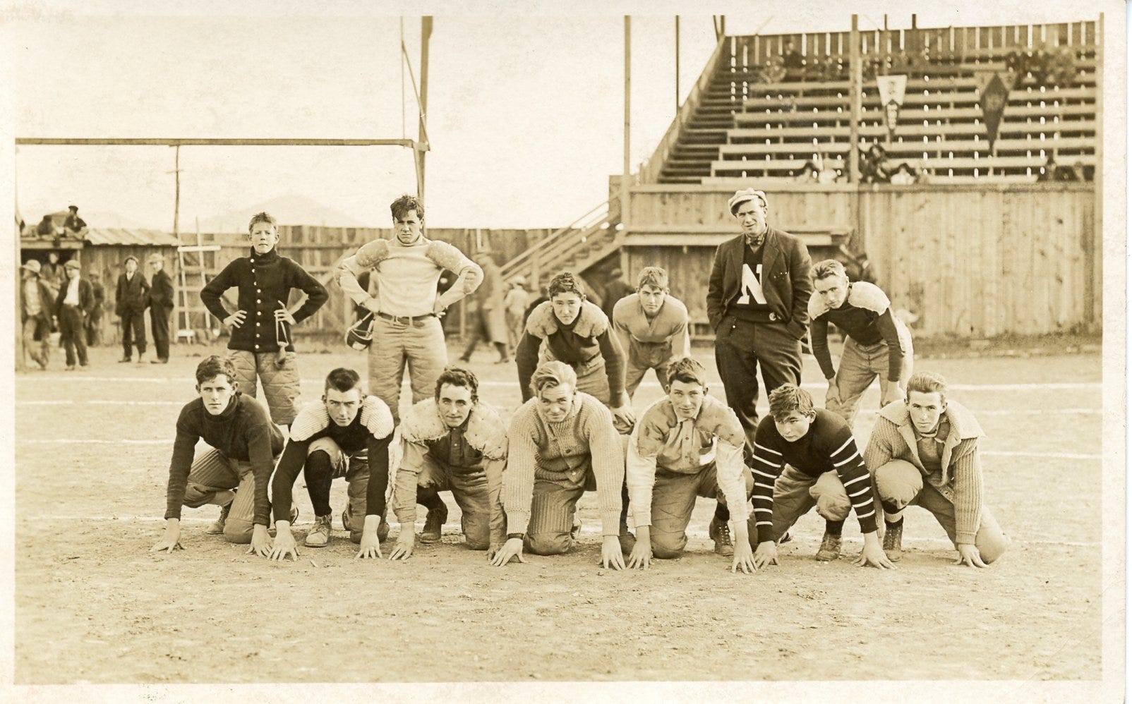 Finally, the black-and-white image does not tell us whether everyone wore a sweater in some shade of red, blue, or whatever the school’s color, but we can assume they tried.