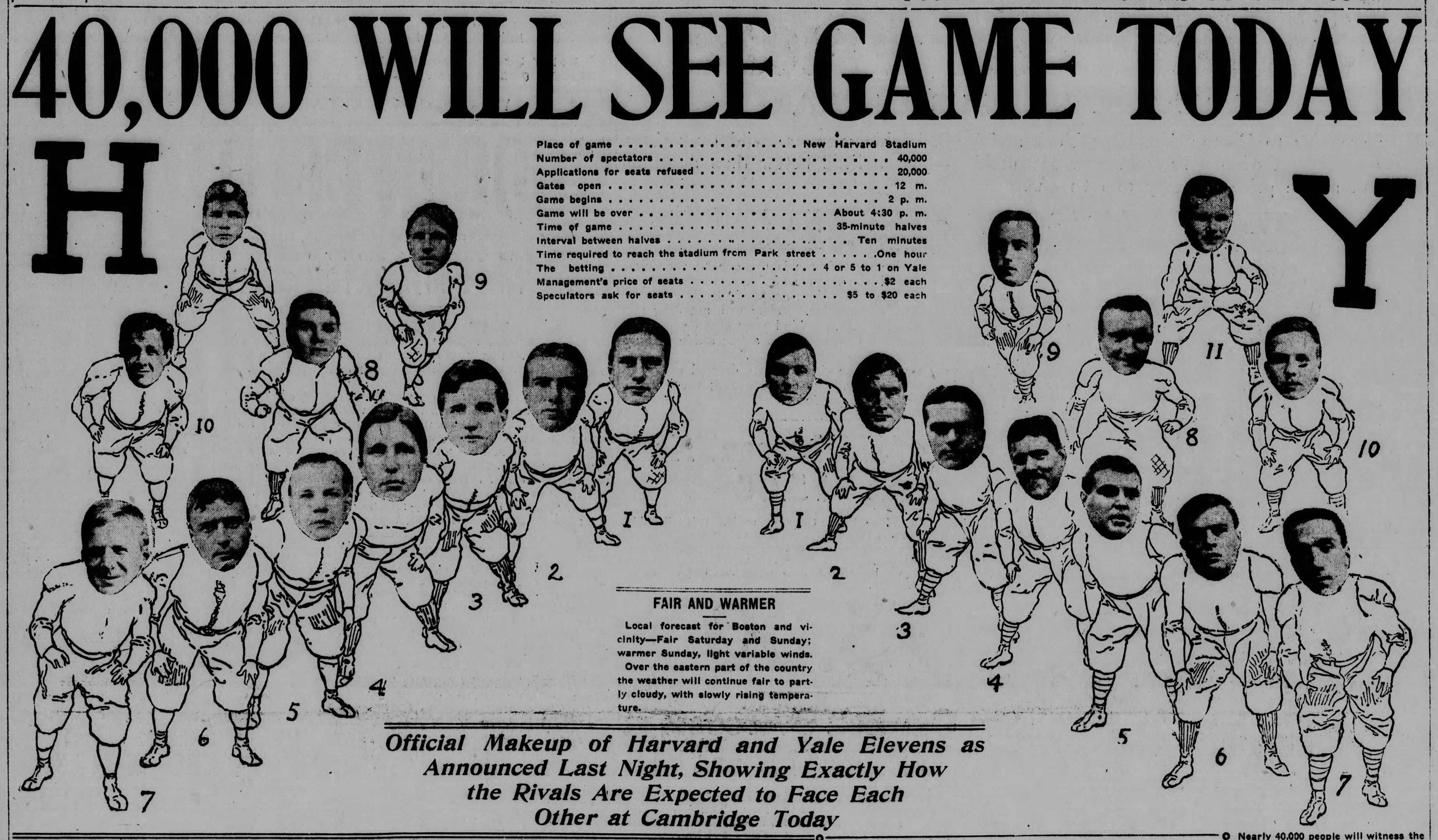 Things did not go well for Harvard against Dartmouth in the first game at Harvard Stadium, as a crowd of 15,000 watched them lose 15-0. Of course, none of that mattered as long as they beat Yale the following week. Yale stood at 10-1 after losing to Princeton, while Harvard fell to Dartmouth.