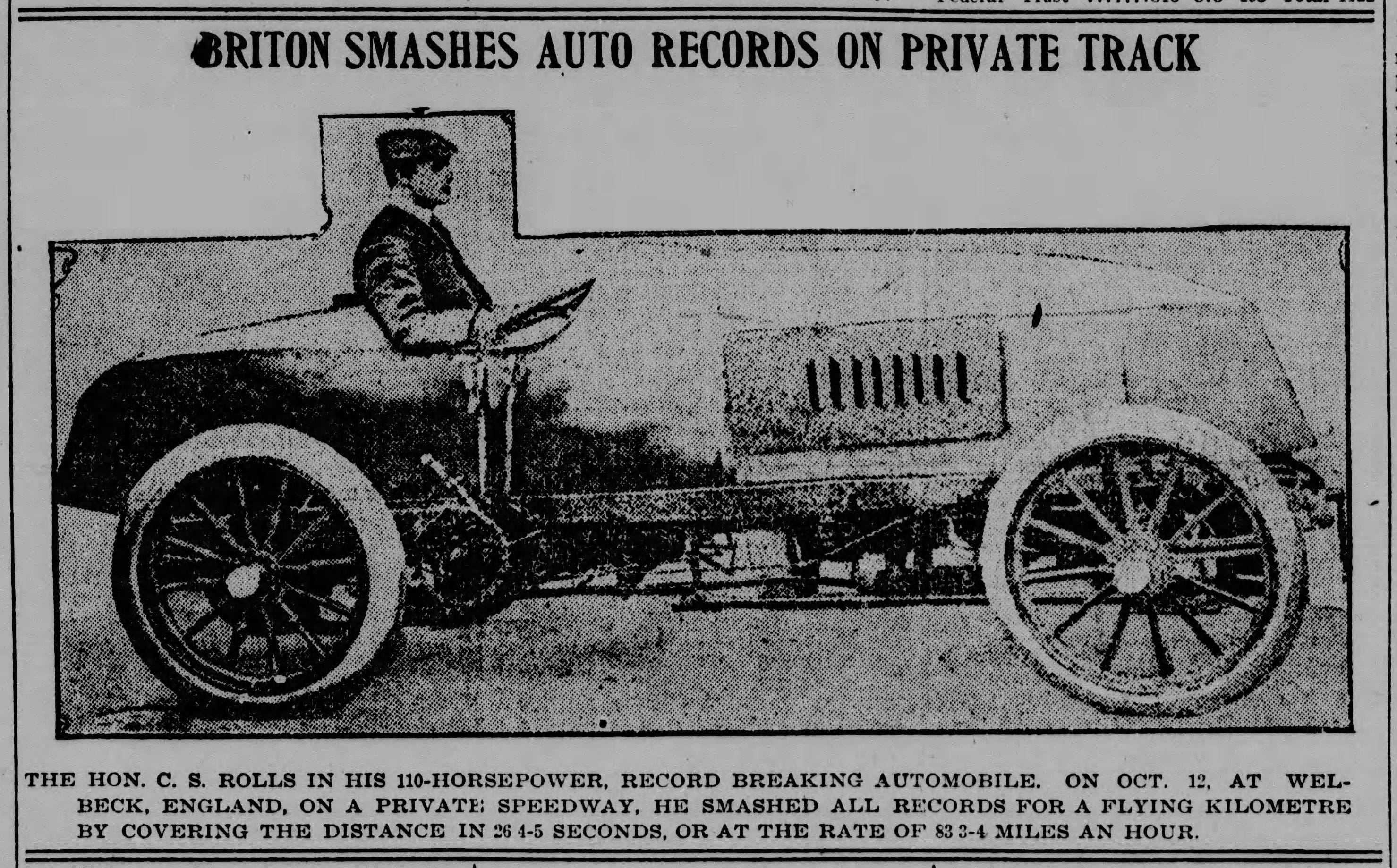 Harvard was 9-1 following the Penn game and practiced in the new stadium for the first time on the Wednesday preceding the stadium's opening game against Dartmouth. Next to the reports of the practice was an article concerning another technological marvel, indicating that a Brit, C. S. Rolls, had set a world automobile speed record for one kilometer, averaging 83.75 MPH. The following year, Mr. Rolls was introduced to his future partner, Mr. Royce, leading them to produce automobiles for Harvard future grads.