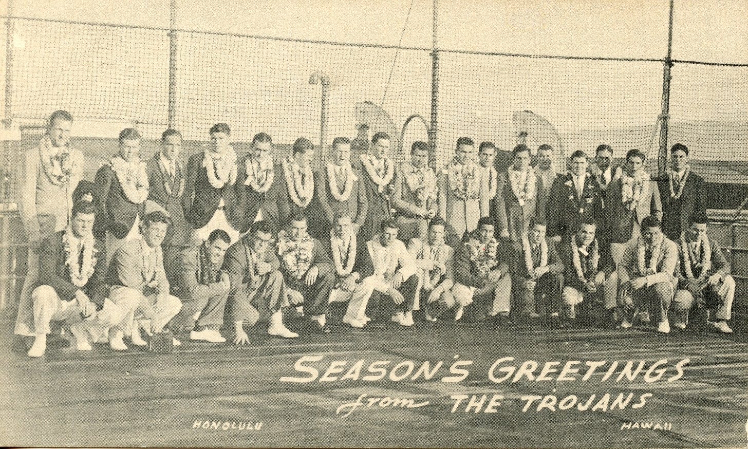 Advances in aviation during the war meant that commercial and charter flights between the mainland and Hawaii soon replaced ocean liners for team travel, allowing Hawaii to travel more quickly for away games while allowing visiting teams to do the same. While games in Hawaii still require long flights, and there are innumerable bowl games nowadays, one can only hope a football team arranges a nostalgic Hawaiian series and travels there and back by ship.