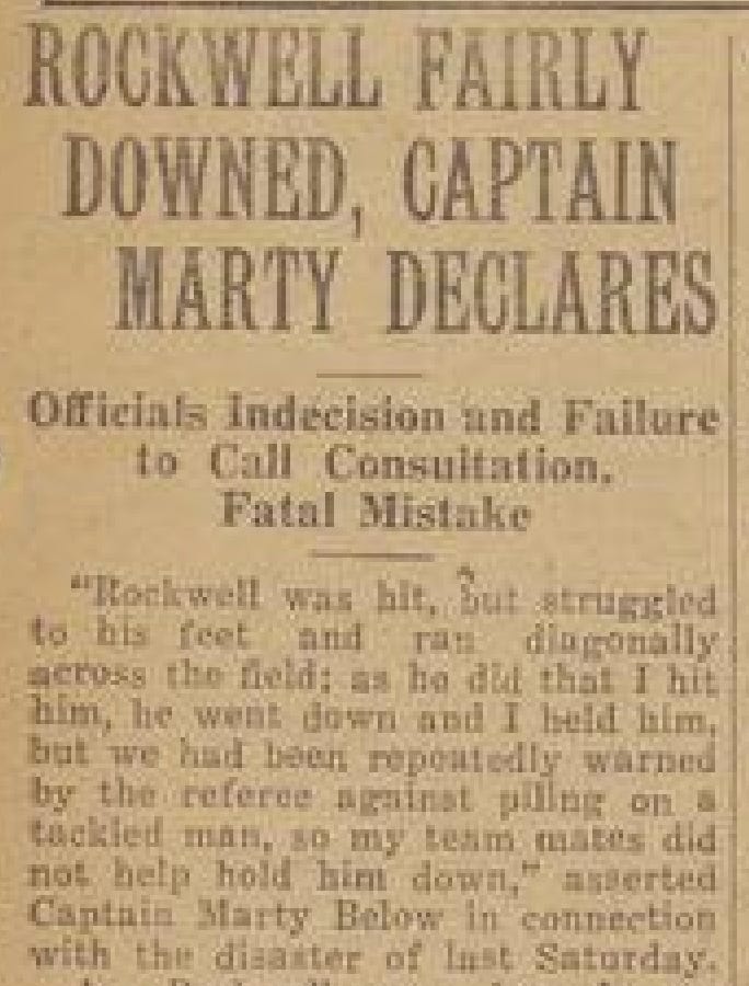 Although Below later claimed Rockwell was in his grasp and his teammates believed the play was dead, Rockwell got up and sprinted for a touchdown with several Badgers in delayed pursuit.