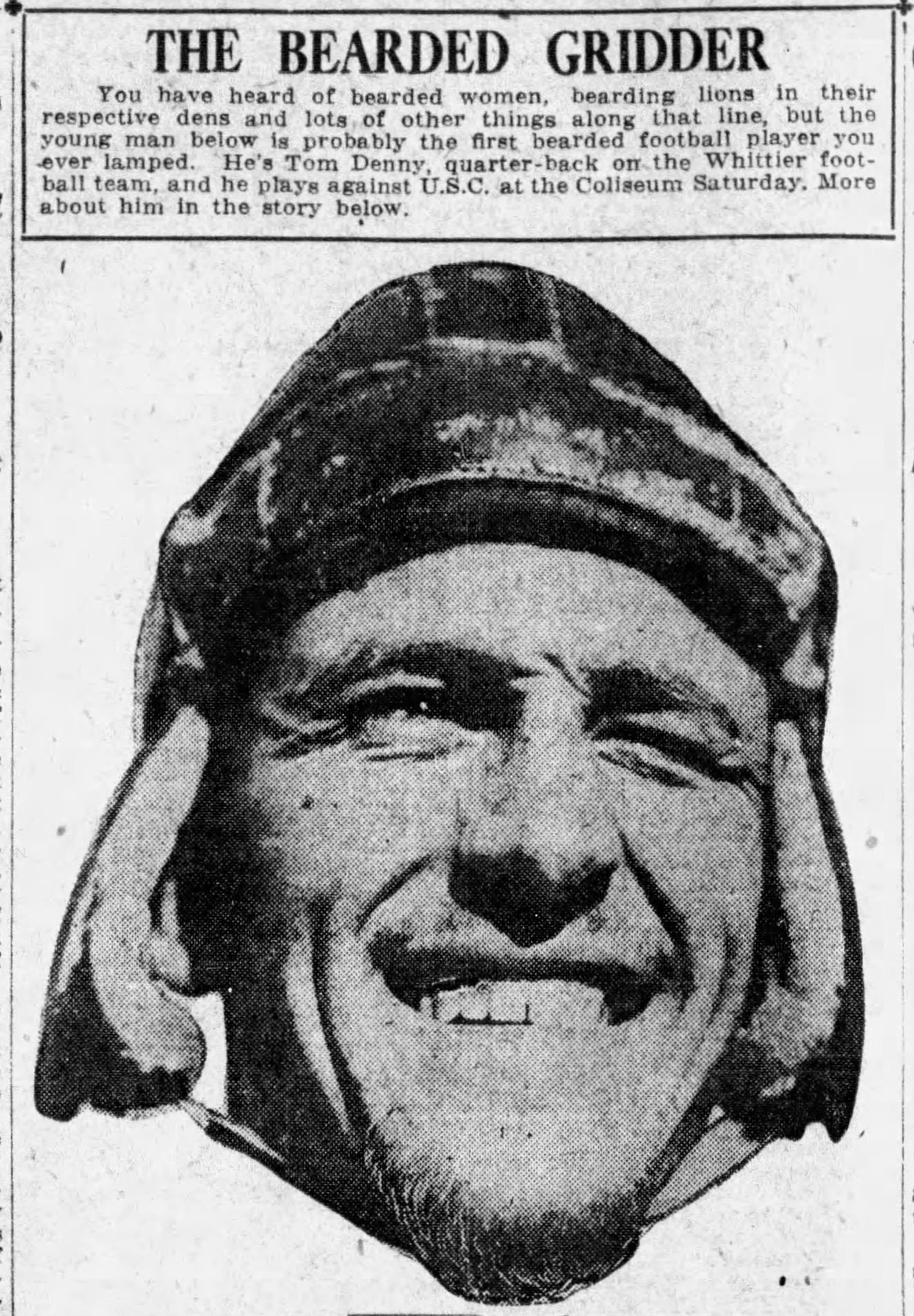 Somewhere along the line, the majority of college men became clean-shaven, so much so that bearded players were sufficiently rare that the occasional bearded player earned coverage in the newspapers.