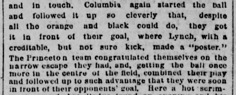 Our next known poster came during the 1879 Yale-Columbia game when Harding of Yale scored a touchdown, and posted the ensuing try at goal.