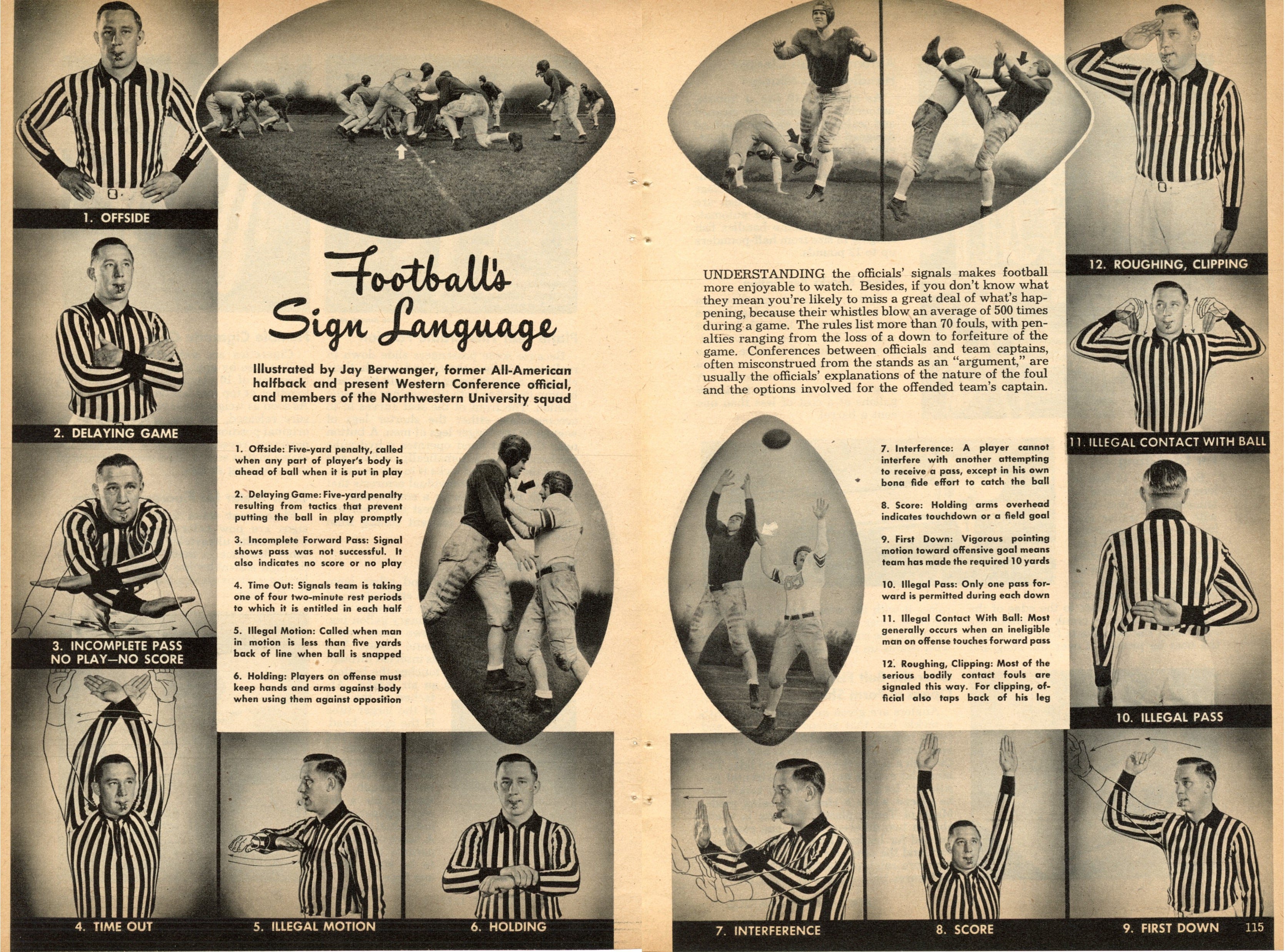 Jay Berwanger was many things. A star football player at the University of Chicago in the mid-1930s, he became the first Heisman Trophy winner in 1935. Berwanger also was the first NFL draft pick, although he never played professional football, as he believed he could earn more money pursuing other endeavors. Still, he loved the game and remained involved by officiating, becoming a Big 10 official in 1940. He continued officiating football until 1955, other than when he was in the Army during World War II.