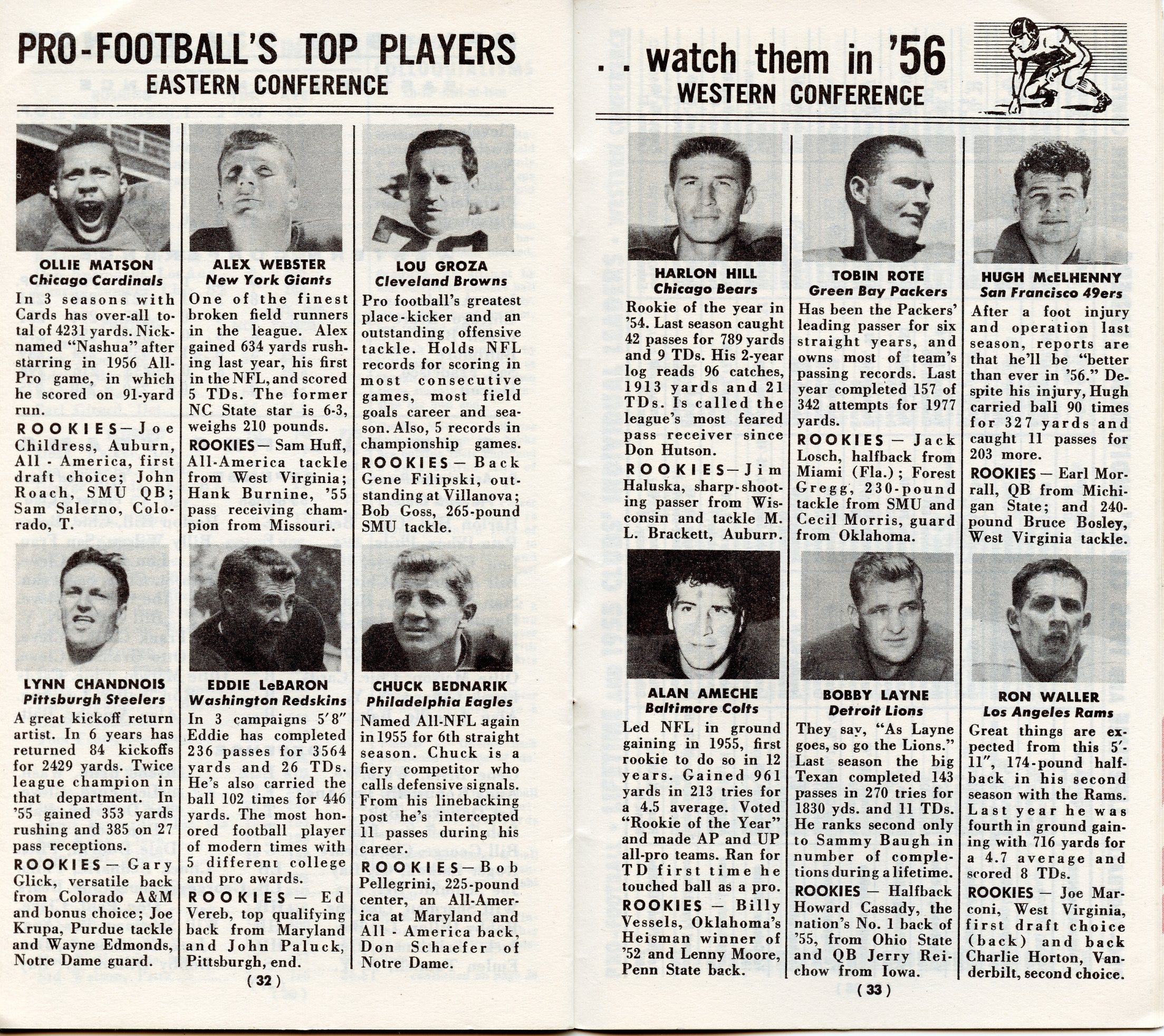 In 1956, NFL teams played six exhibition games and twelve league games, plus the two divisional winners played in a championship game. It seems crazy now for training camp to last half as long as the season itself, but that's what they did.