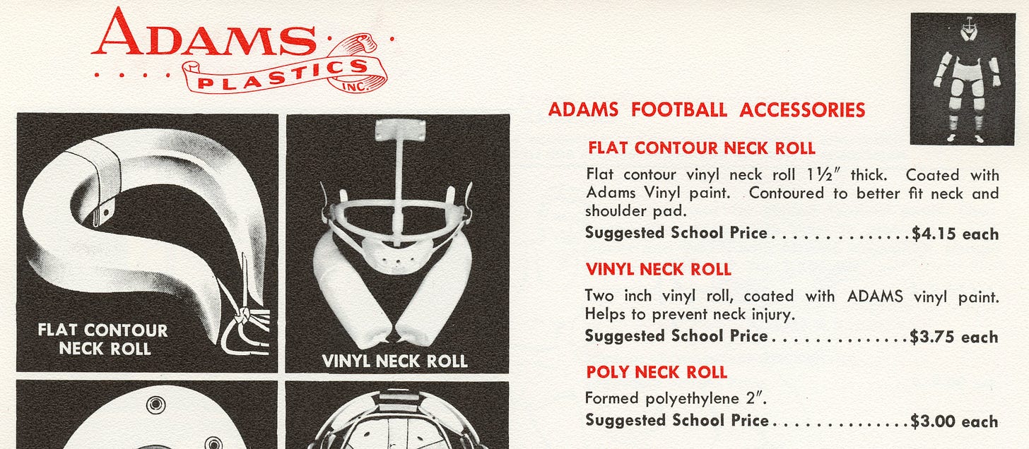 While redesigned helmets, neck bumpers, and the availability of four-point chin straps in the 1960s helped limit the guillotine effect, they had less impact on neck injuries and the “stingers” that can result when a player’s head is struck from the side. To address players who suffered neck injuries, players began, as a preventive measure, wearing neck rolls, both the bulky tubular roll and the flatter version.
