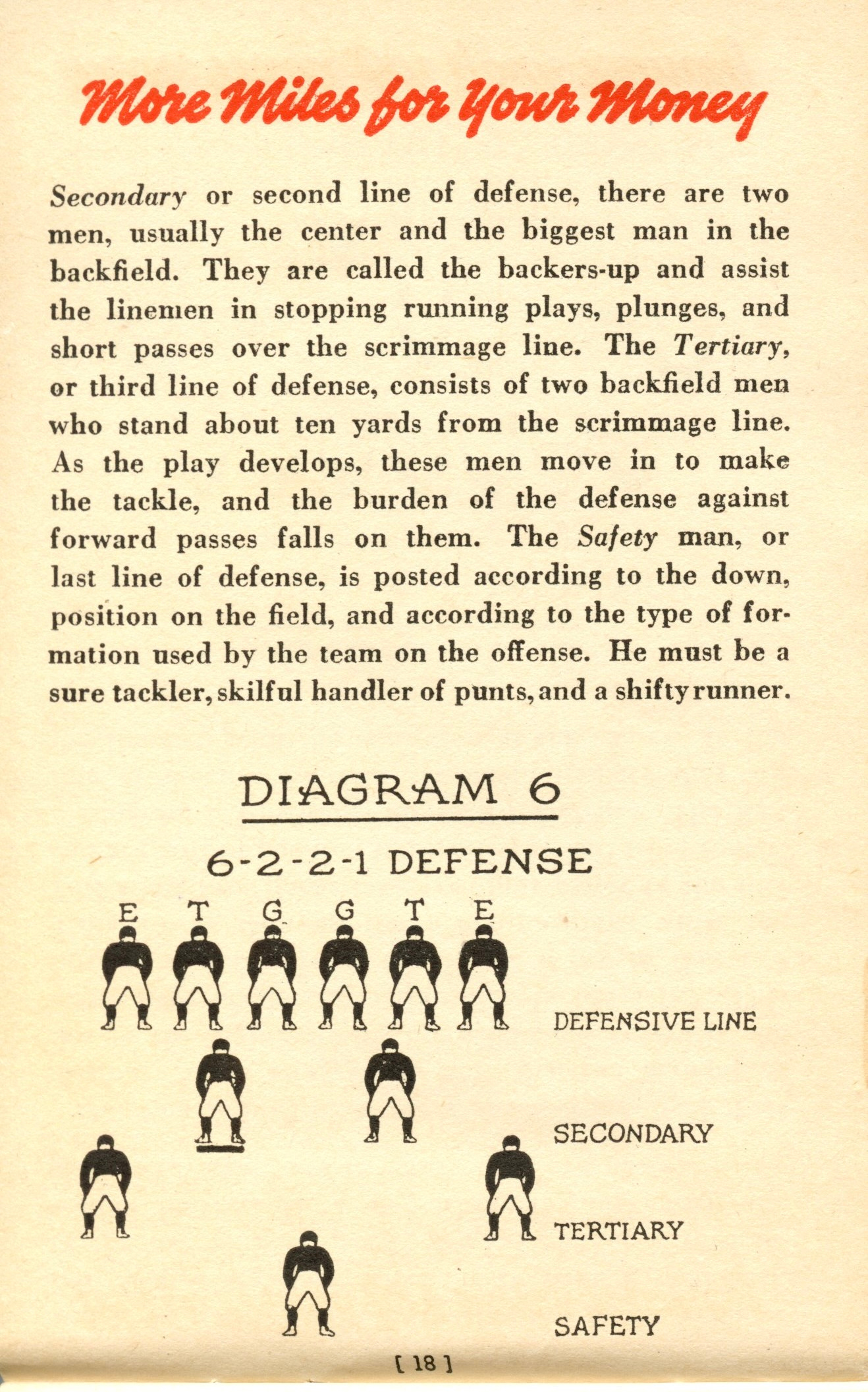 Third, the Atlantic Gas writer referred to the backers-up as the secondary defense and the backs as the tertiary defense. That terminology already verged on old-fashioned in 1938 but would have been understood by football fans. When did you last hear a play-by-play announcer mention the tertiary defense?