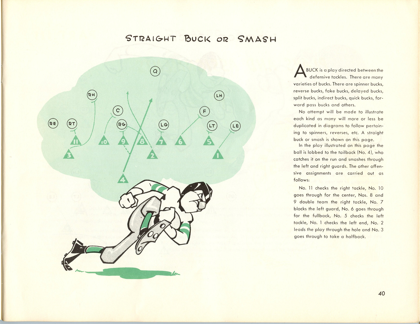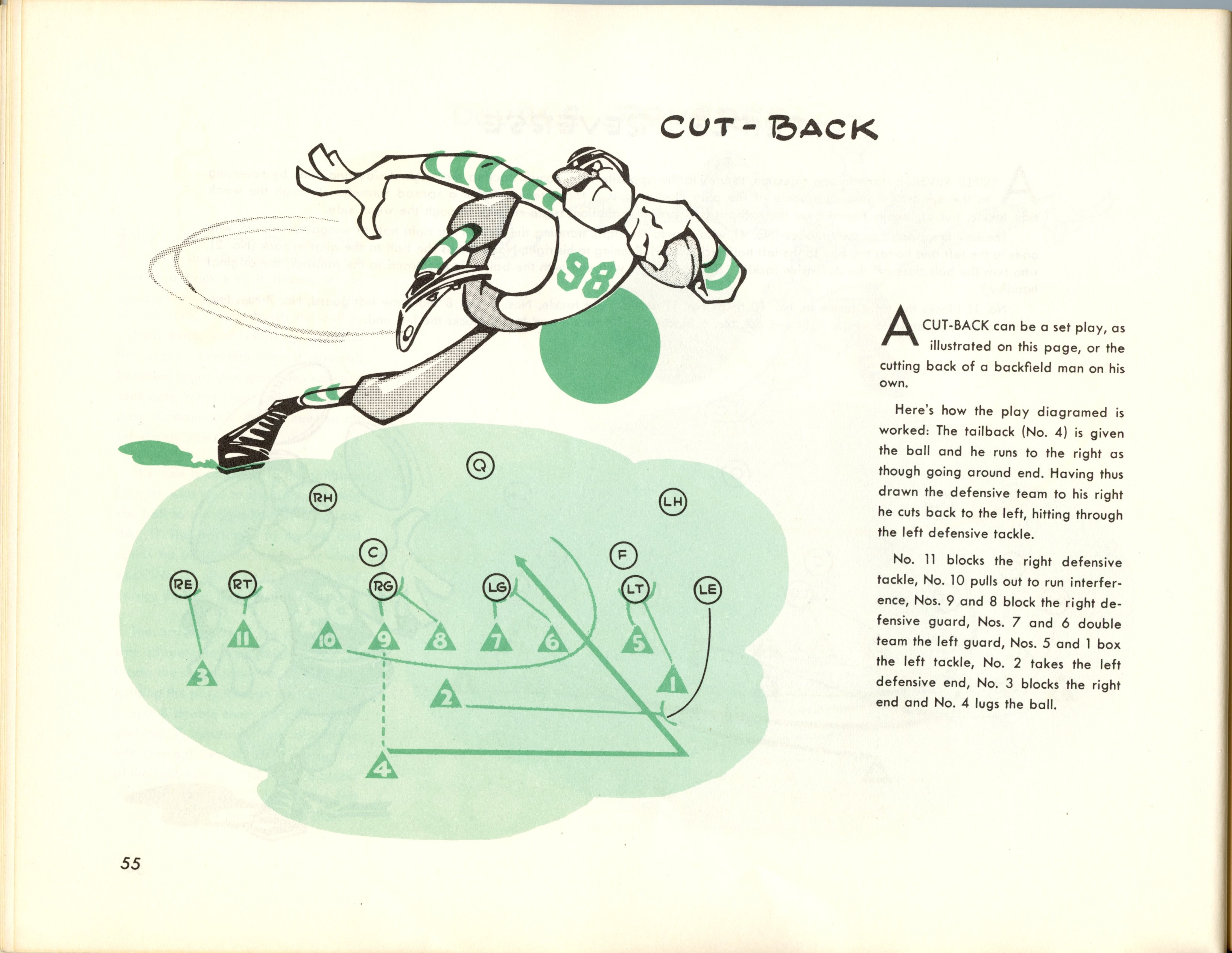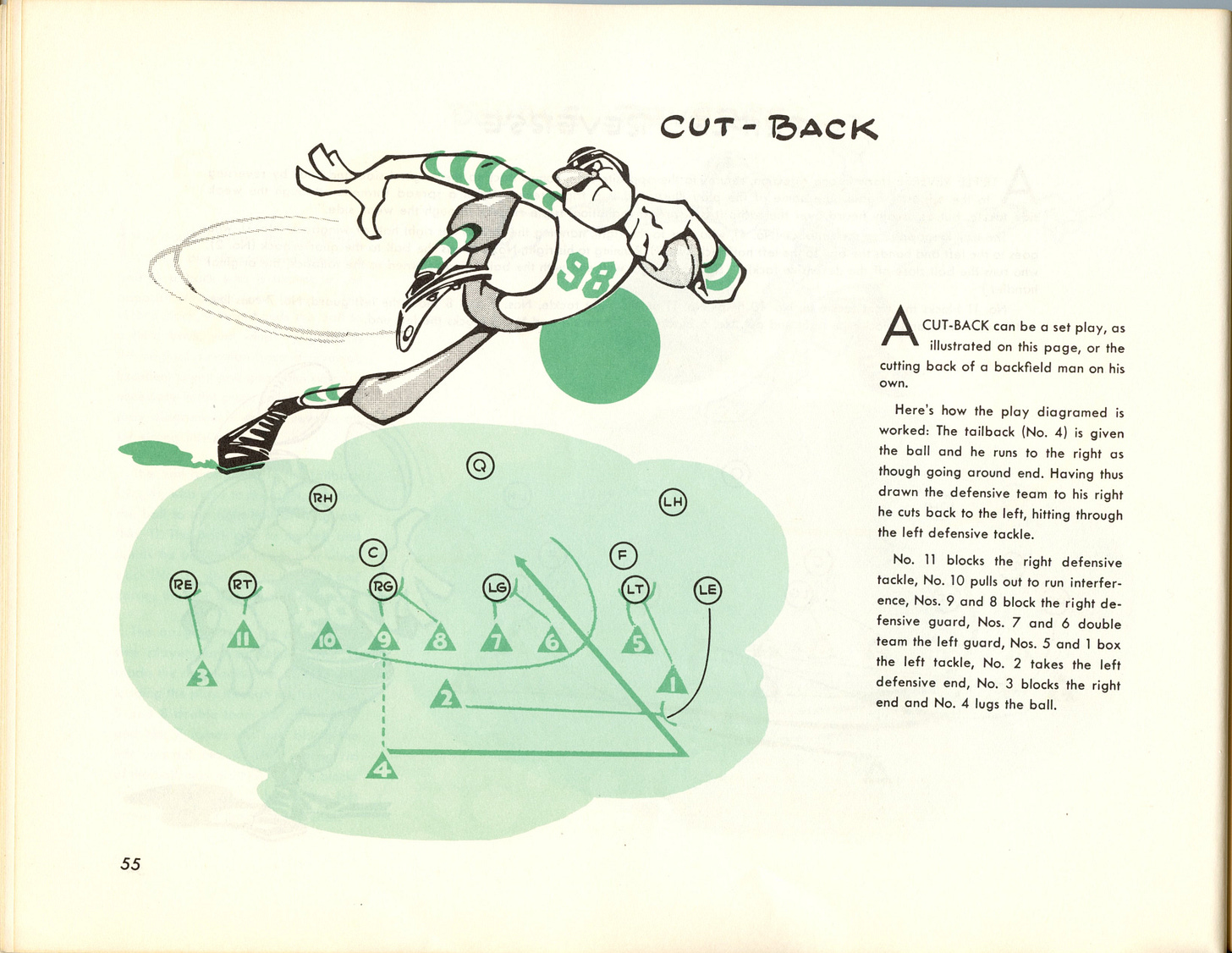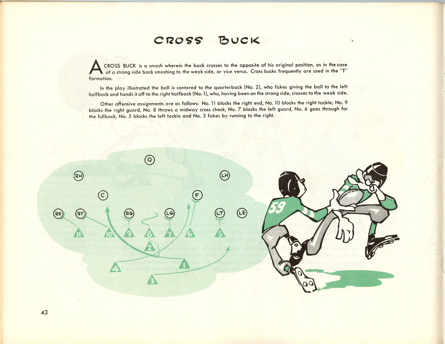 Today, we move from covering formations to plays. As mentioned in yesterday's article, they released Everybody's Football in 1947, and I'm working from a 1955 revision. However, most of the formations and plays have a 1940s vibe more than those from the 1950s, with most plays run from Single and Double Wing rather than the T.