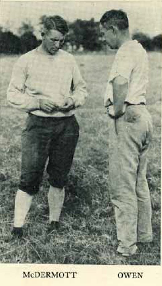 Following the incident itself, the loss of his arm received little mention in period news articles other than biographies. Yearbooks and other publications typically showed Owen standing in profile with the image shot from his left, though a subset of published images made no secret of losing his arm.