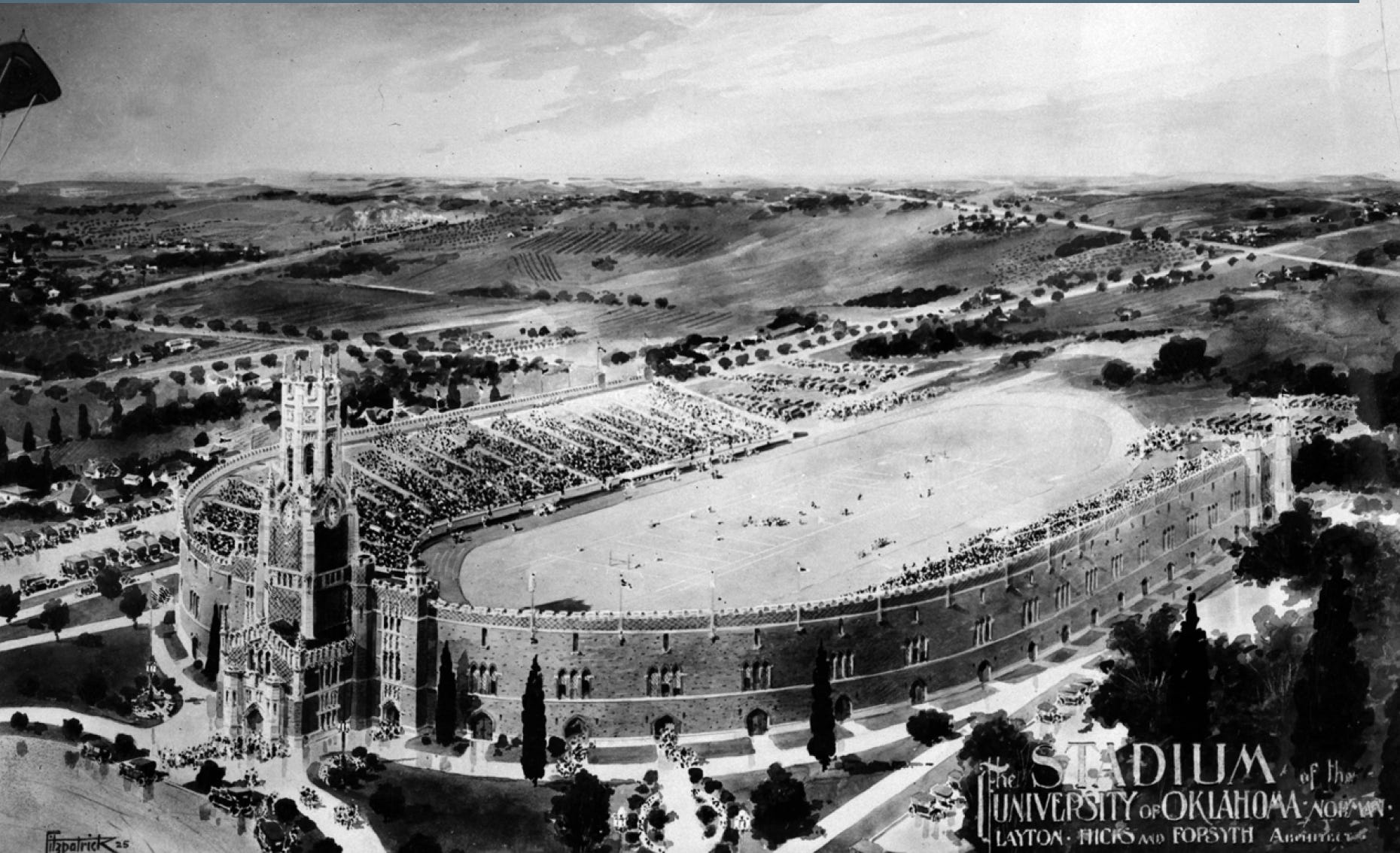 Although his football win percentage fell off in the 1920s, he still won 58% of his games in Norman as he raised the program's stature, including gaining admission to the Missouri Valley Conference in 1920 and building Oklahoma's athletic infrastructure. Owen's work allowed the school to initiate fundraising for a permanent campus football stadium, often referred to as Owen Field, built in stages starting in 1925.